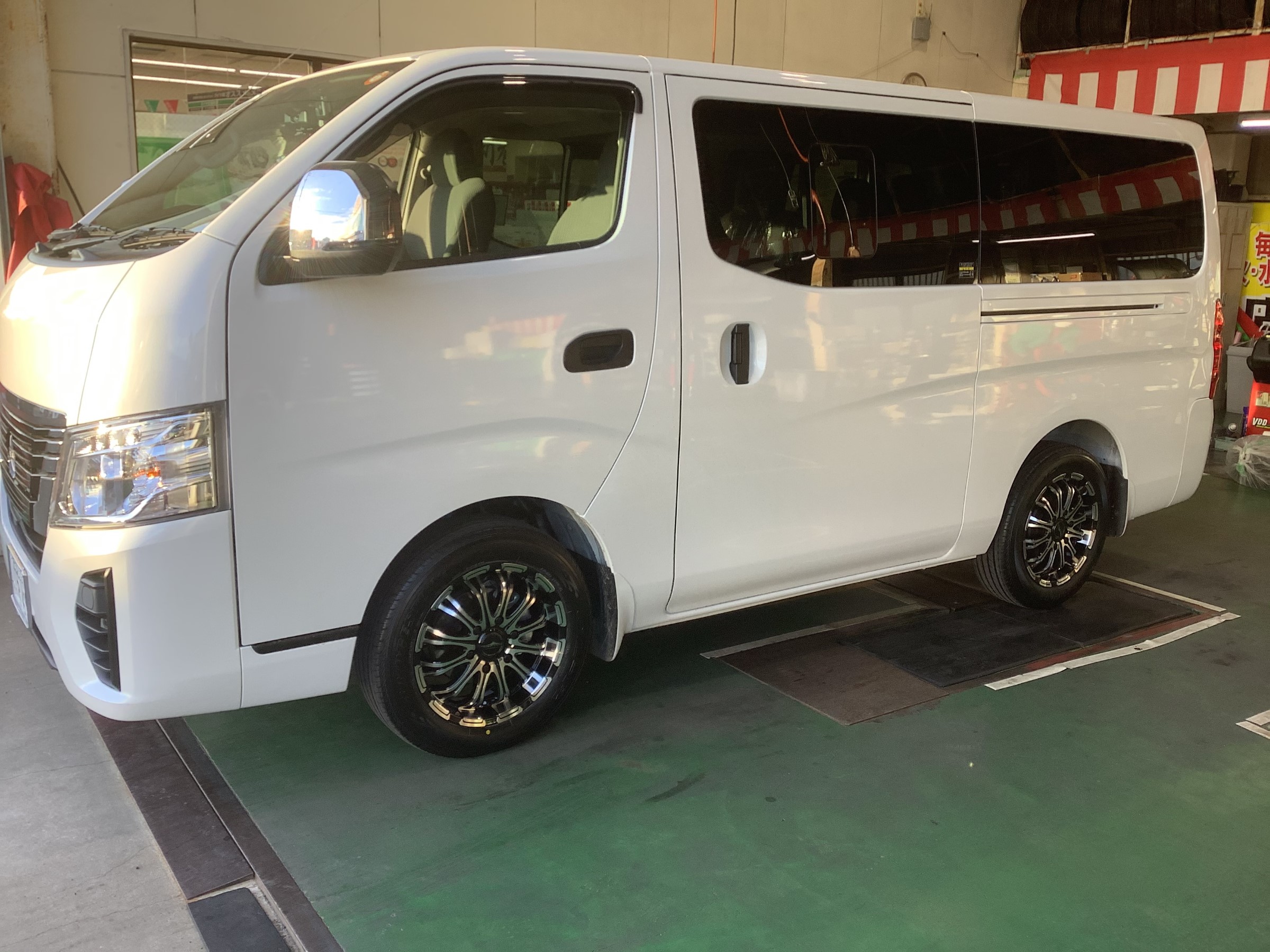 キャラバンのタイヤホイール交換を実施しました。