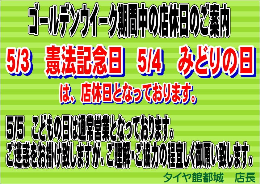G・W期間中の店休日なので、たくさんのお客様にご迷惑をお掛けしますm(__)m