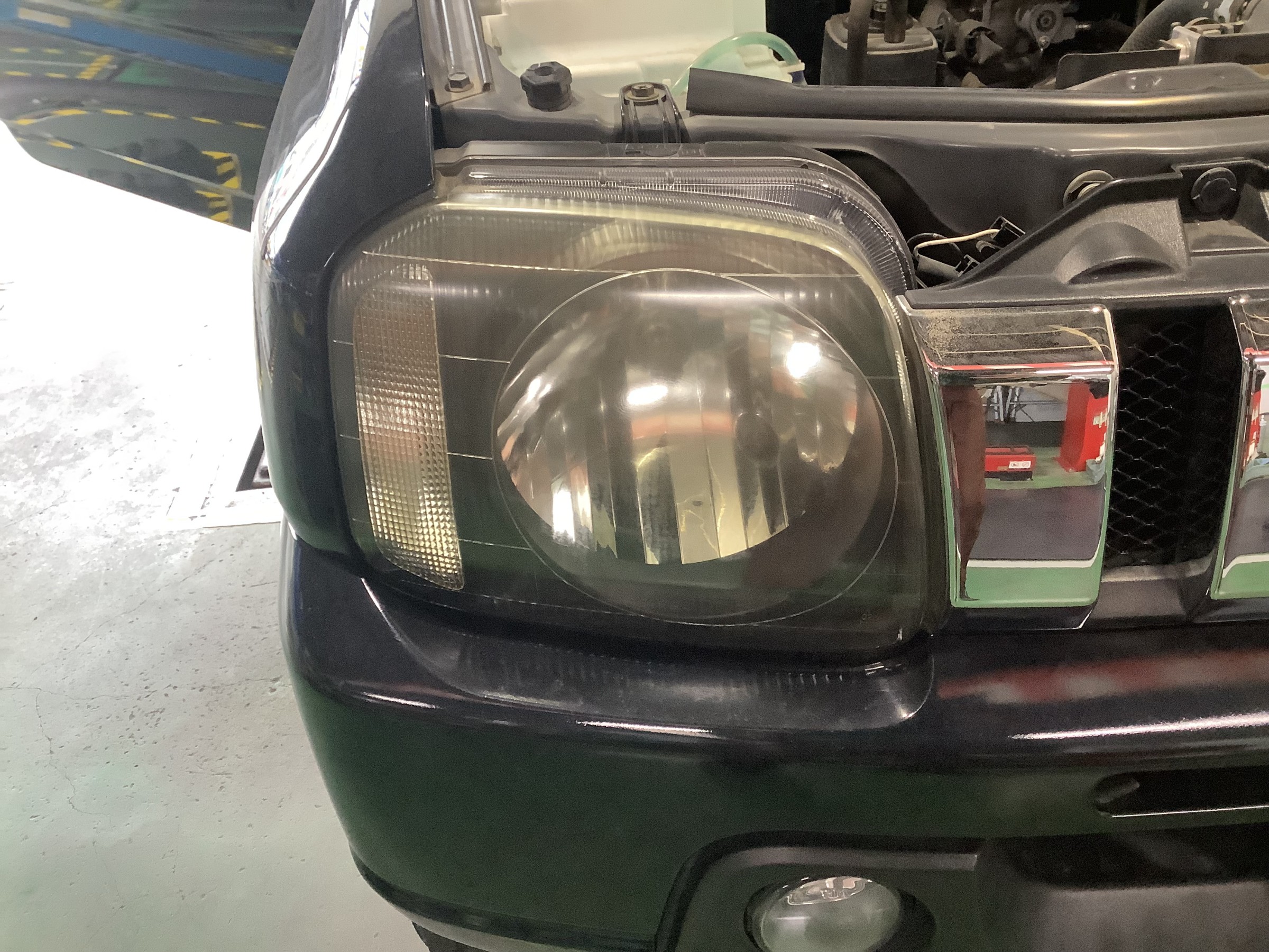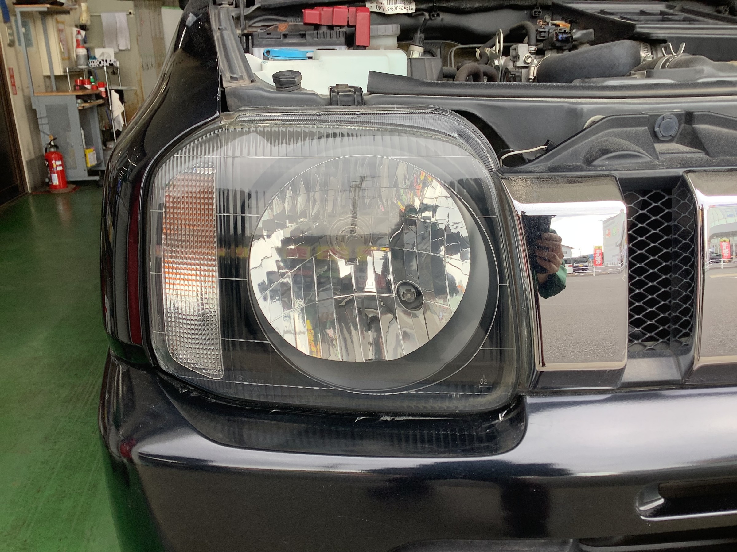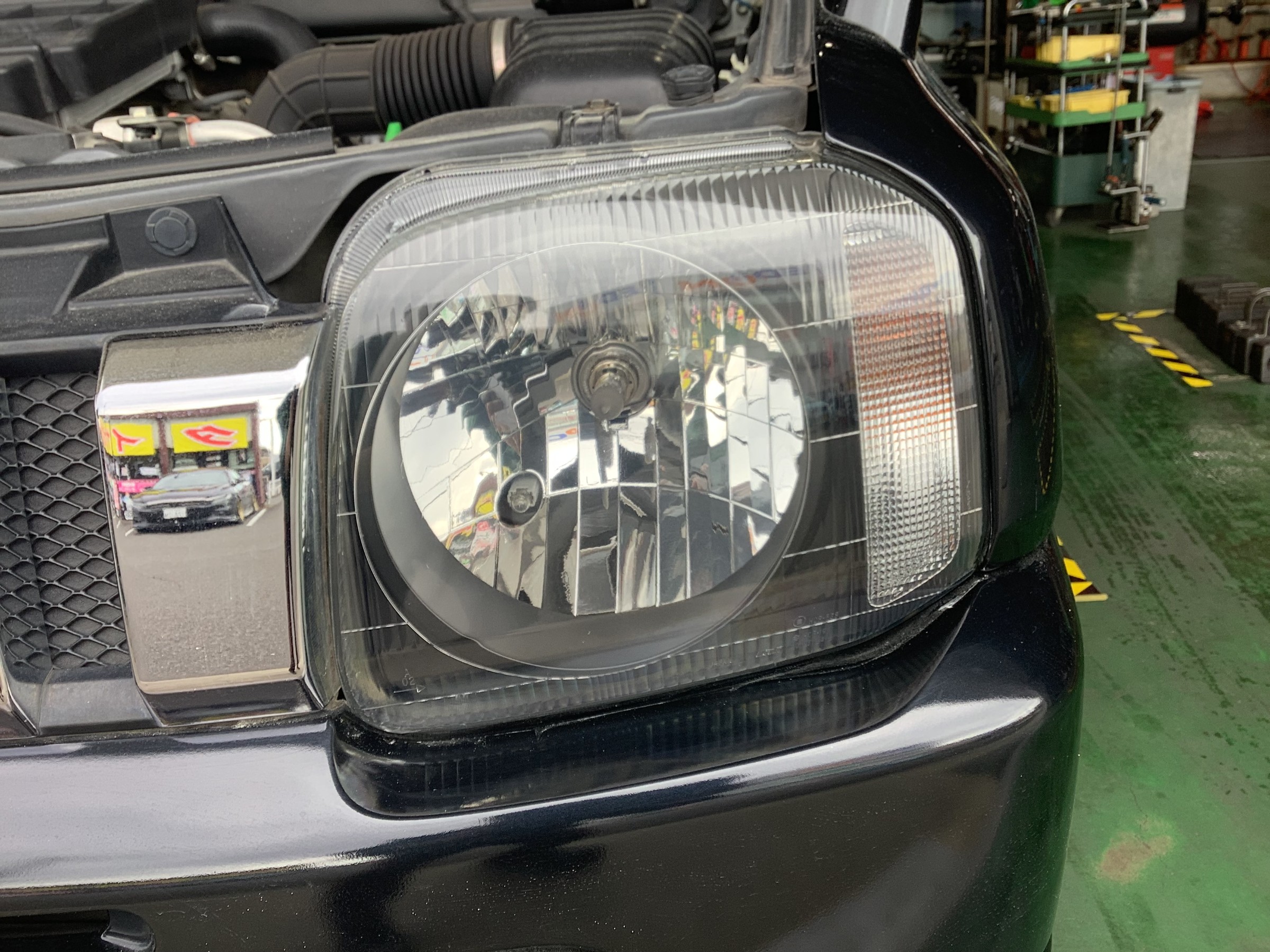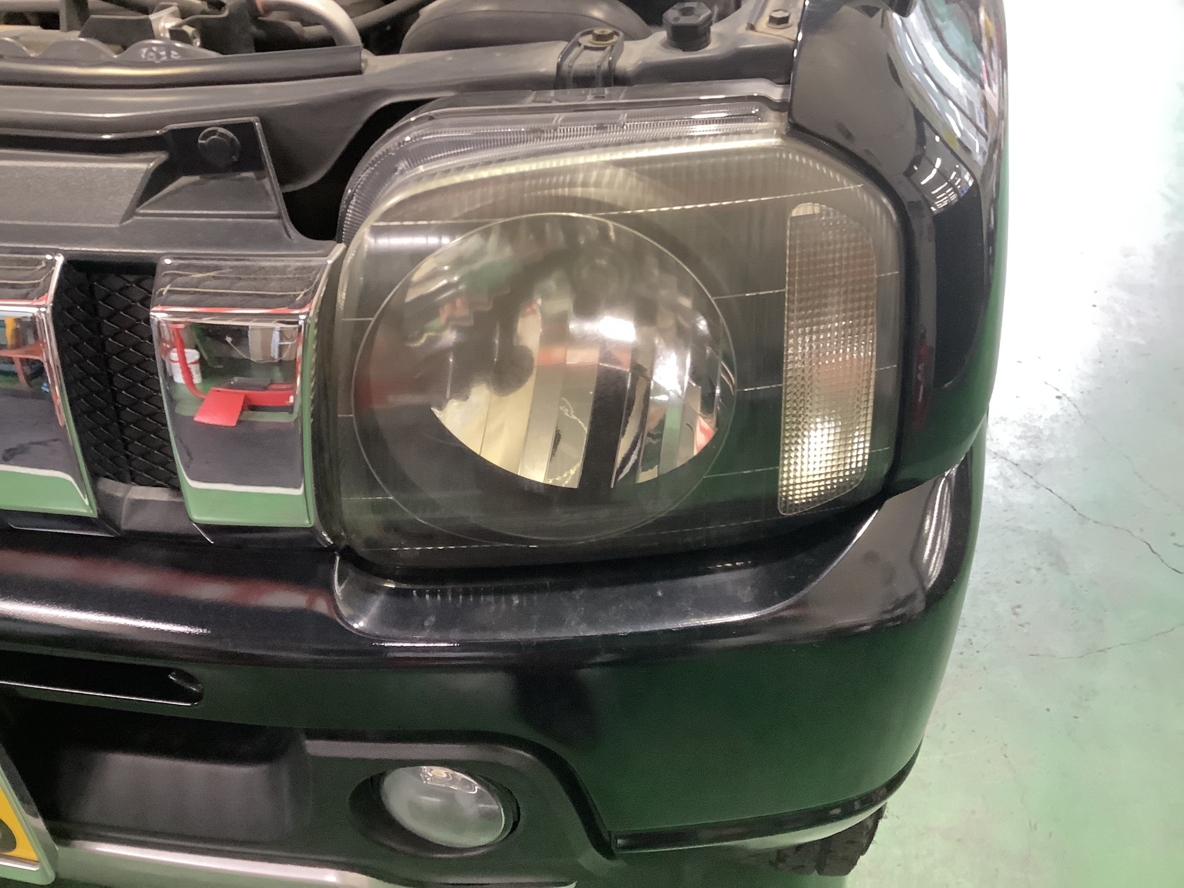 本日はジムニーのヘッドライト磨き、コーティングを行いました!