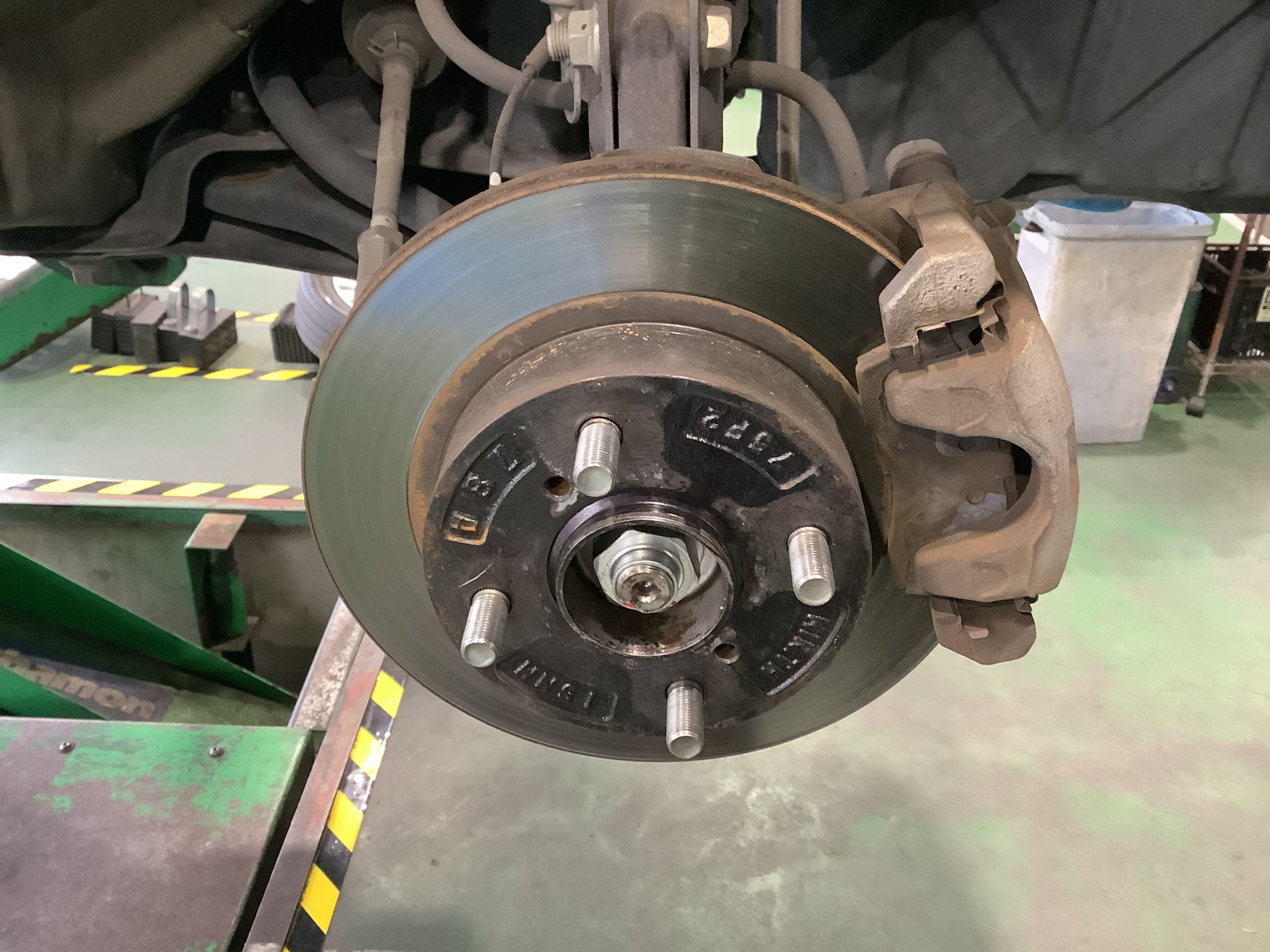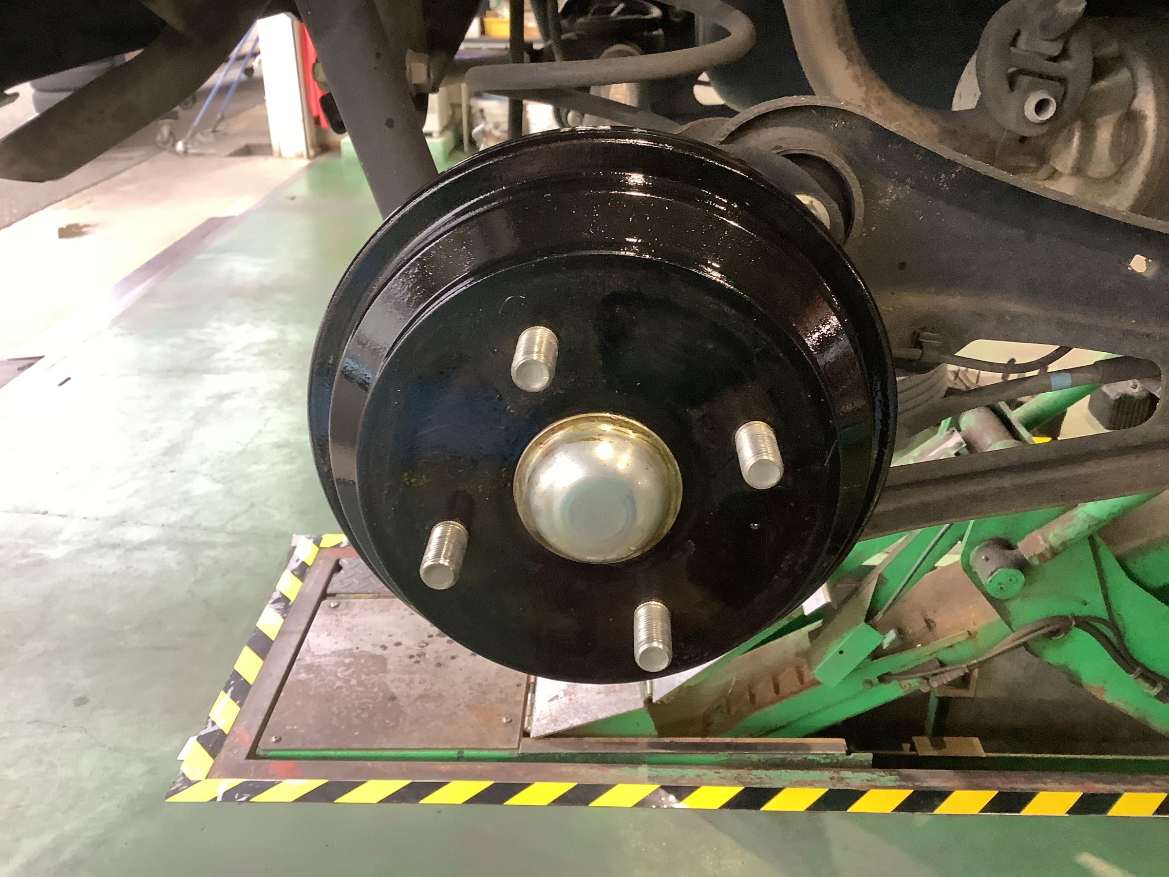 施工前はやはり錆が出てきてしまっているタイヤホイールを取り付けるハブ