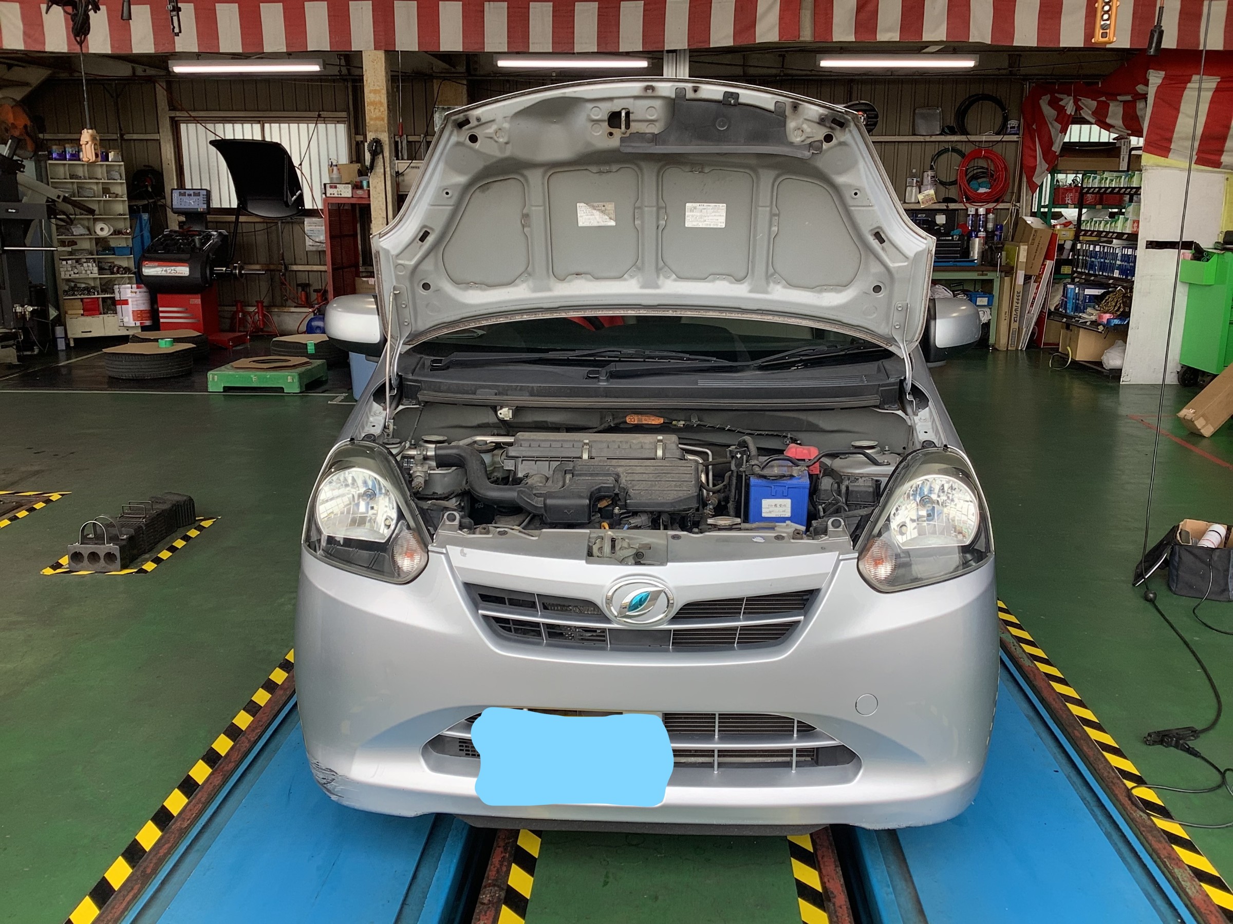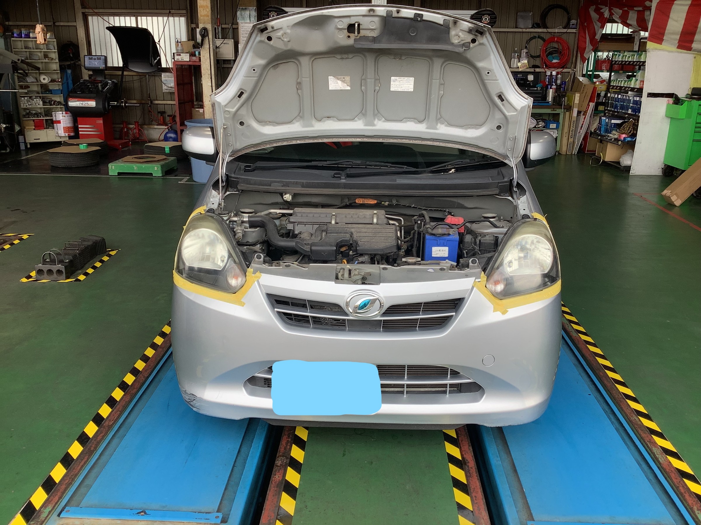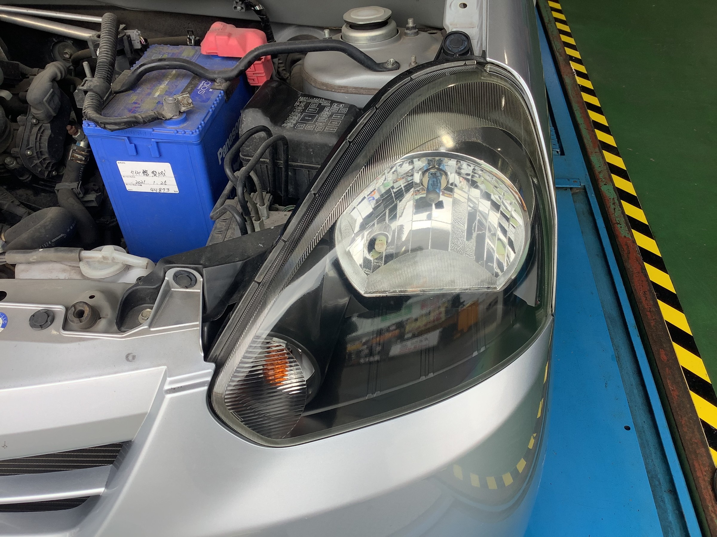 本日はミライースのヘッドライト磨きオイル交換を行いました!!