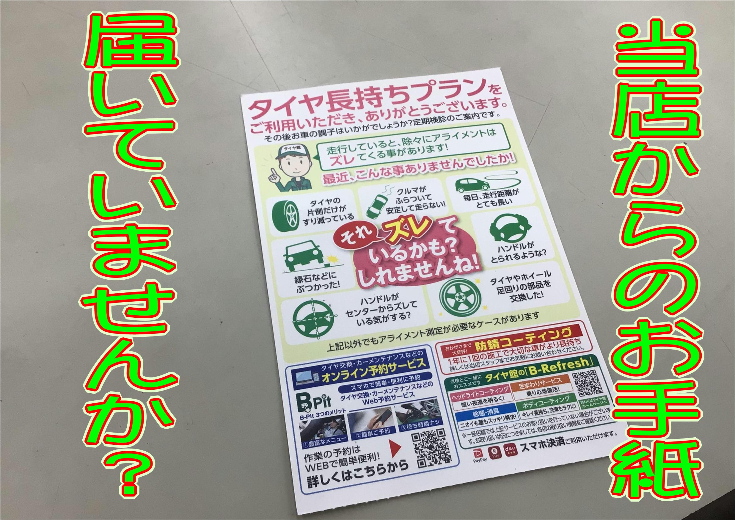定期的にお出しするこのお手紙、忘れやすい空気圧点検や無料の安全点検の案内です。