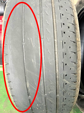 これは、タイヤが片減りをしている状態です( ;∀;)