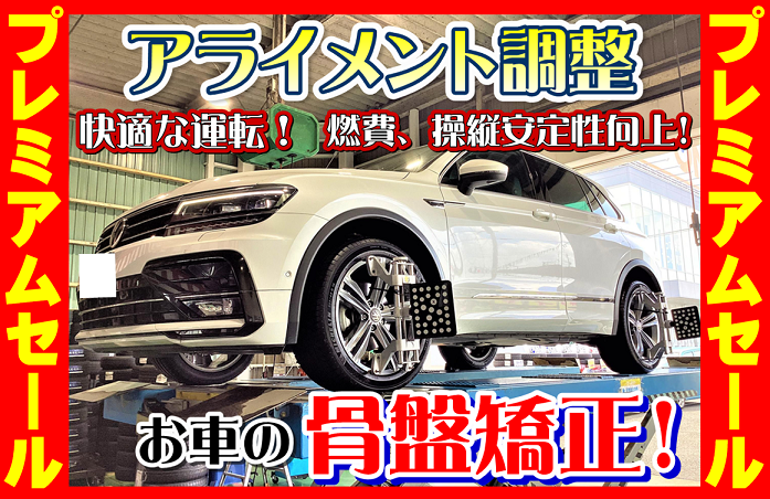 【プレミアムタイヤセール開催中!】輸入車のアライメント調整もお任せ下さい(^^)/