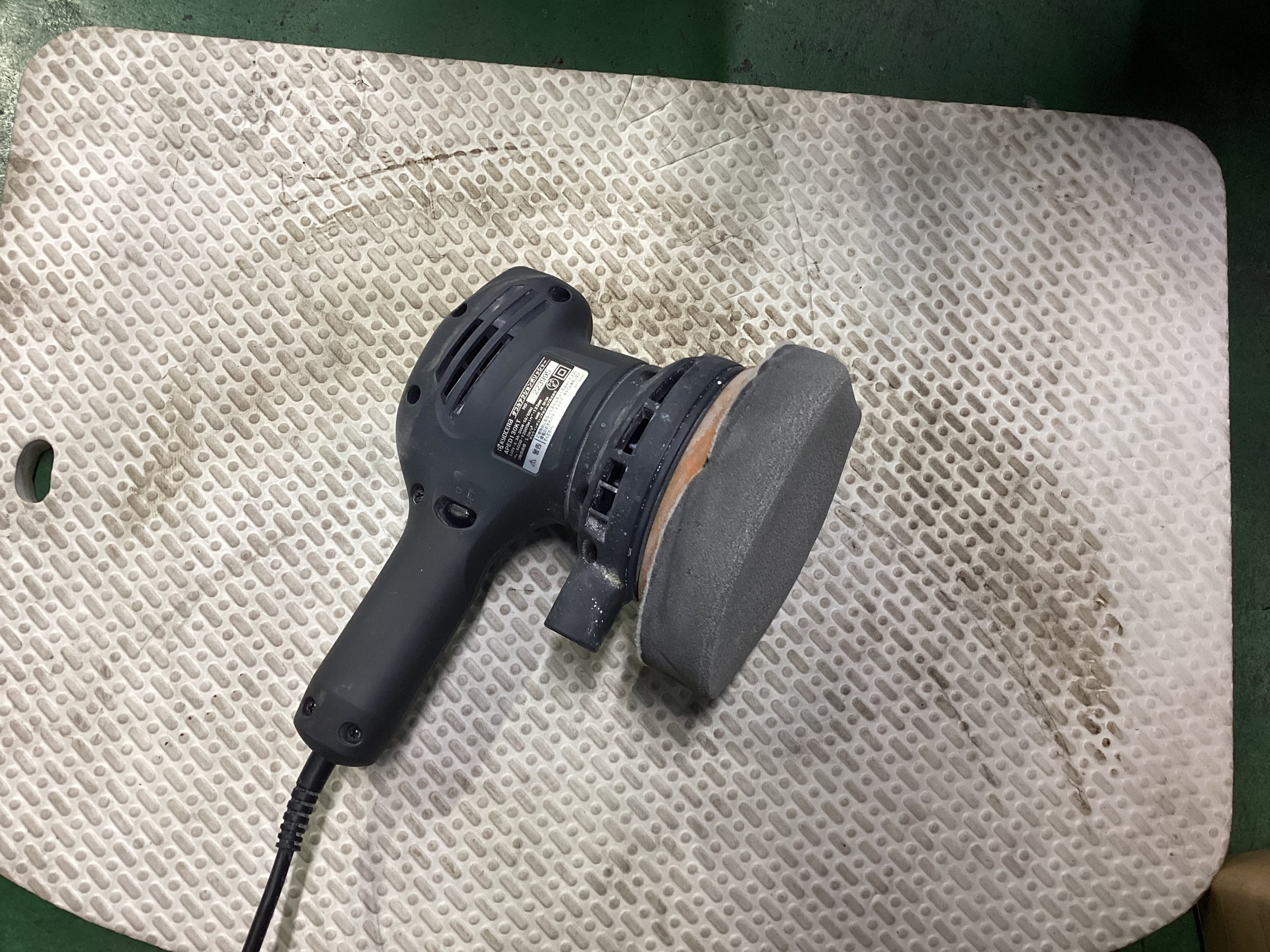 こちらのバフと特殊な研磨剤で磨いていき、黄ばみとムラになった古いコーティングを落としていきます。