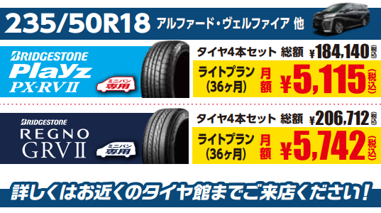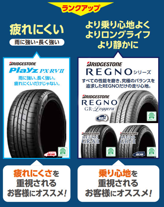 【検索用】タイヤ交換・点検・履き替え・ブリヂストン・国産タイヤ・空気圧点検・レグノ