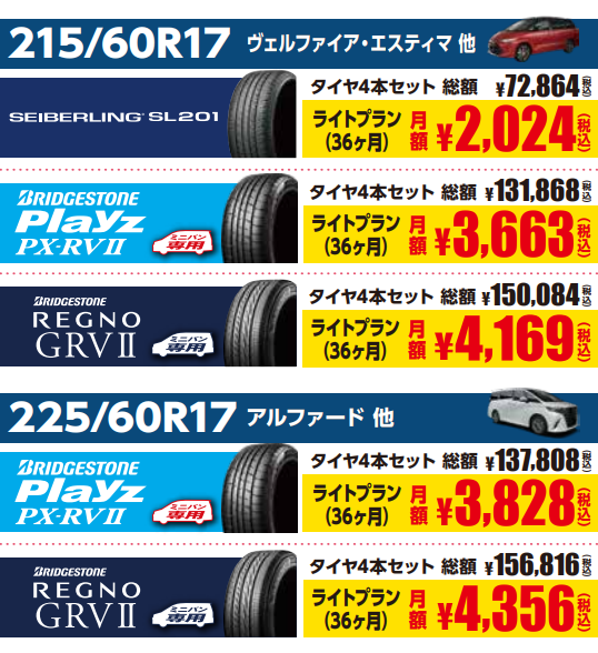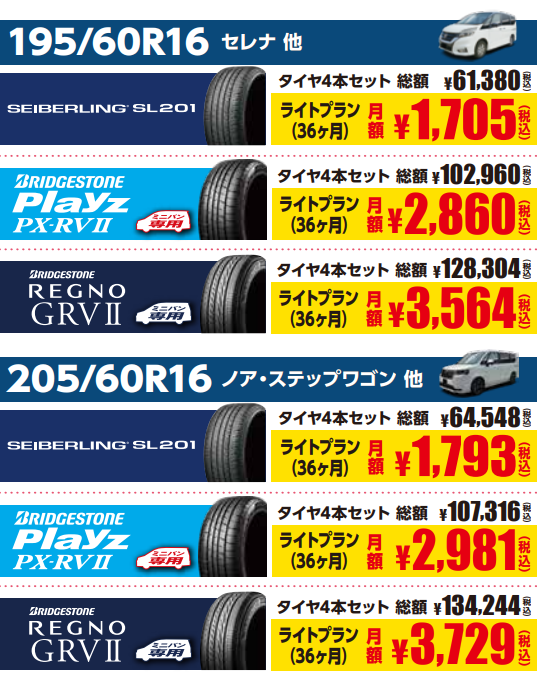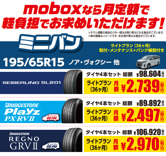 【mobox】『ミニバンにお乗りの方必見!』タイヤも定額で経済的に買えちゃう!