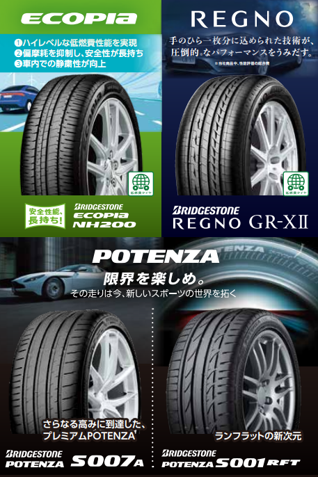 【検索用】タイヤ交換・点検・履き替え・ブリヂストン・国産タイヤ・空気圧点検・レグノ
