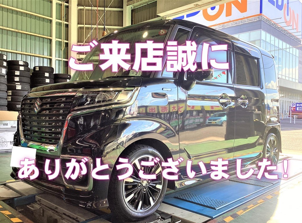 新規のお客様のスペーシアカスタムへ、【タイヤ交換&アライメント調整】をおこないました!
