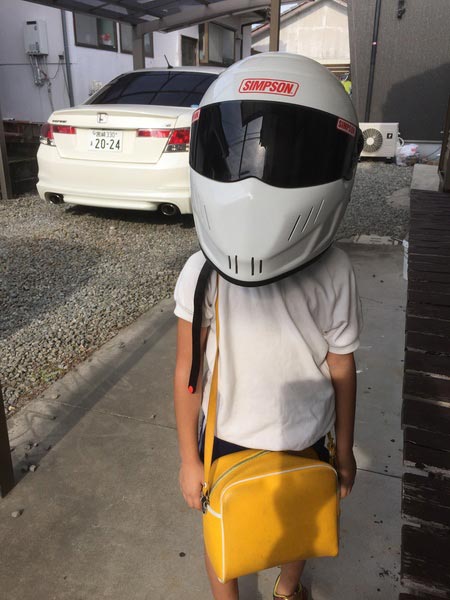 何思ったのか、末っ子がヘルメットをかぶりたい!!!そのまま幼稚園???