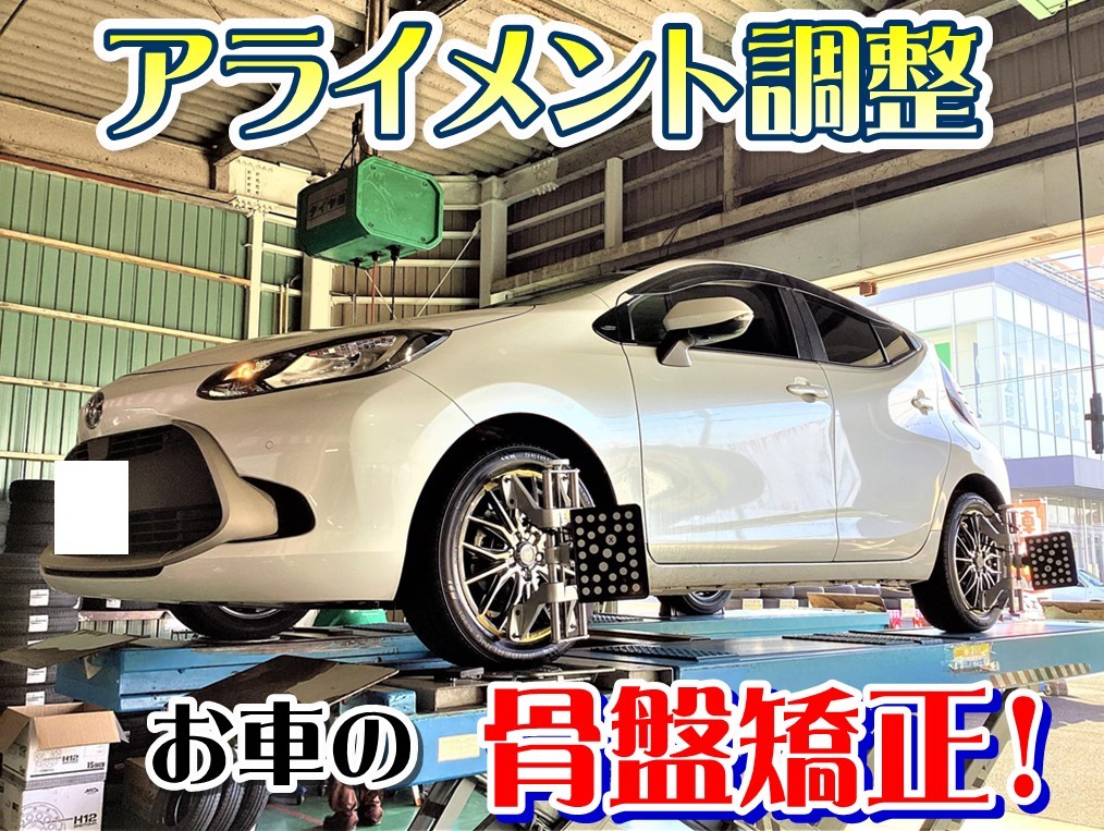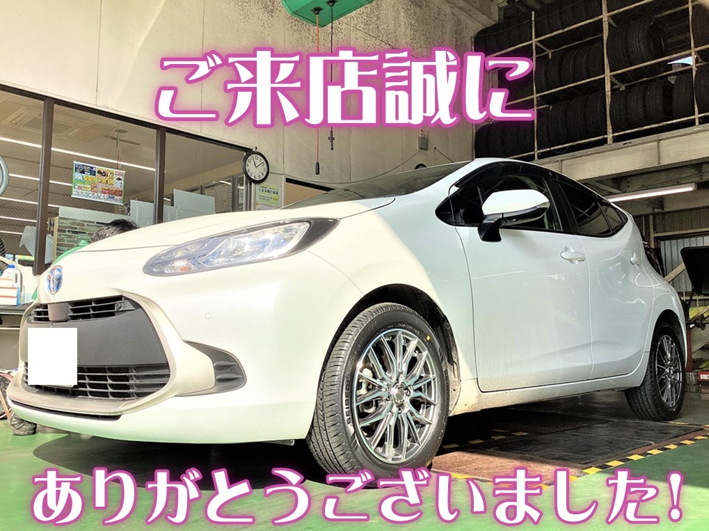 お客様のアクアへ、【タイヤ交換&アライメント調整】をおこないました!