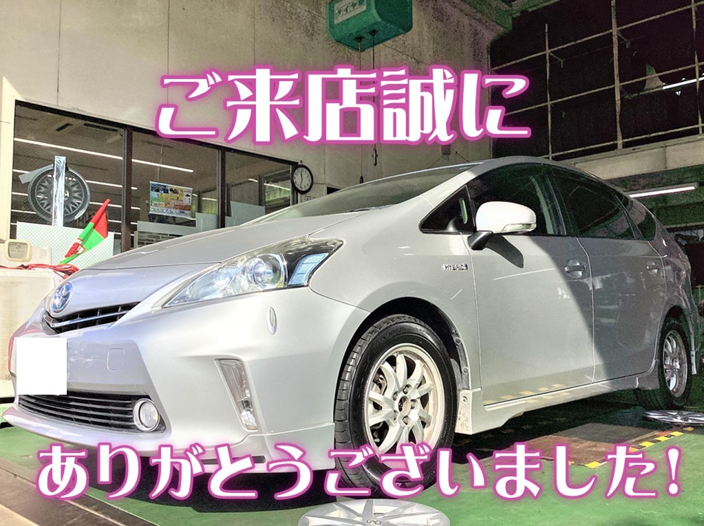 お客様のプリウスαへ、【タイヤ交換&アライメント調整】をおこないました!