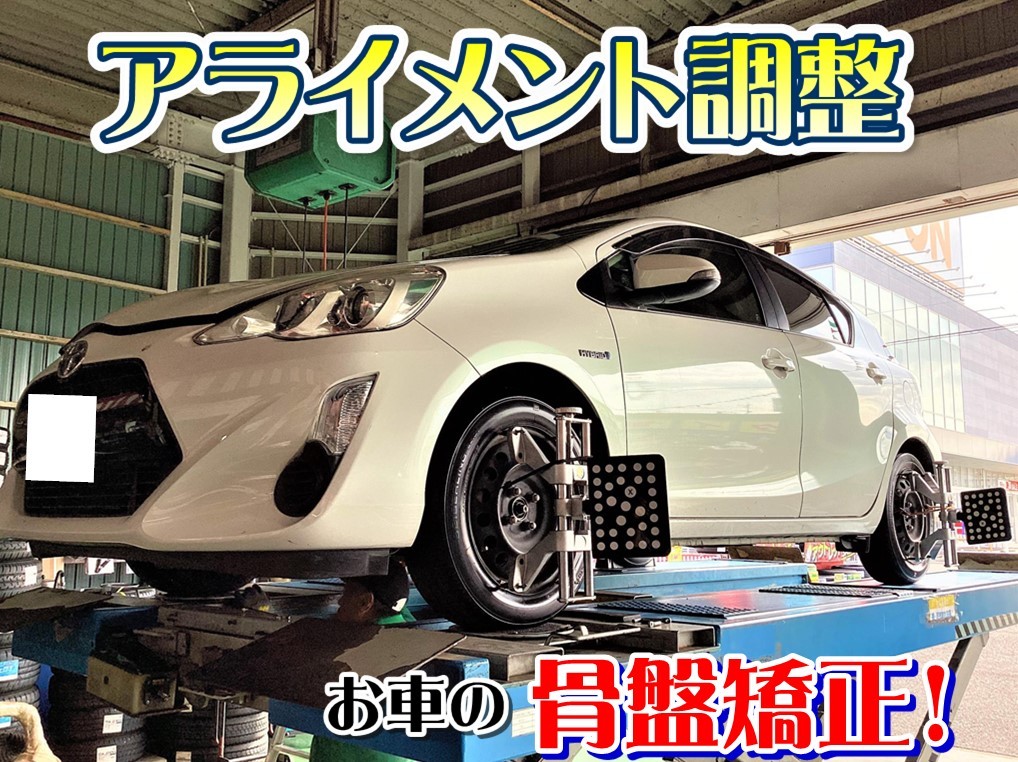 お客様のアクアへ、【タイヤ交換&アライメント調整】をおこないました!