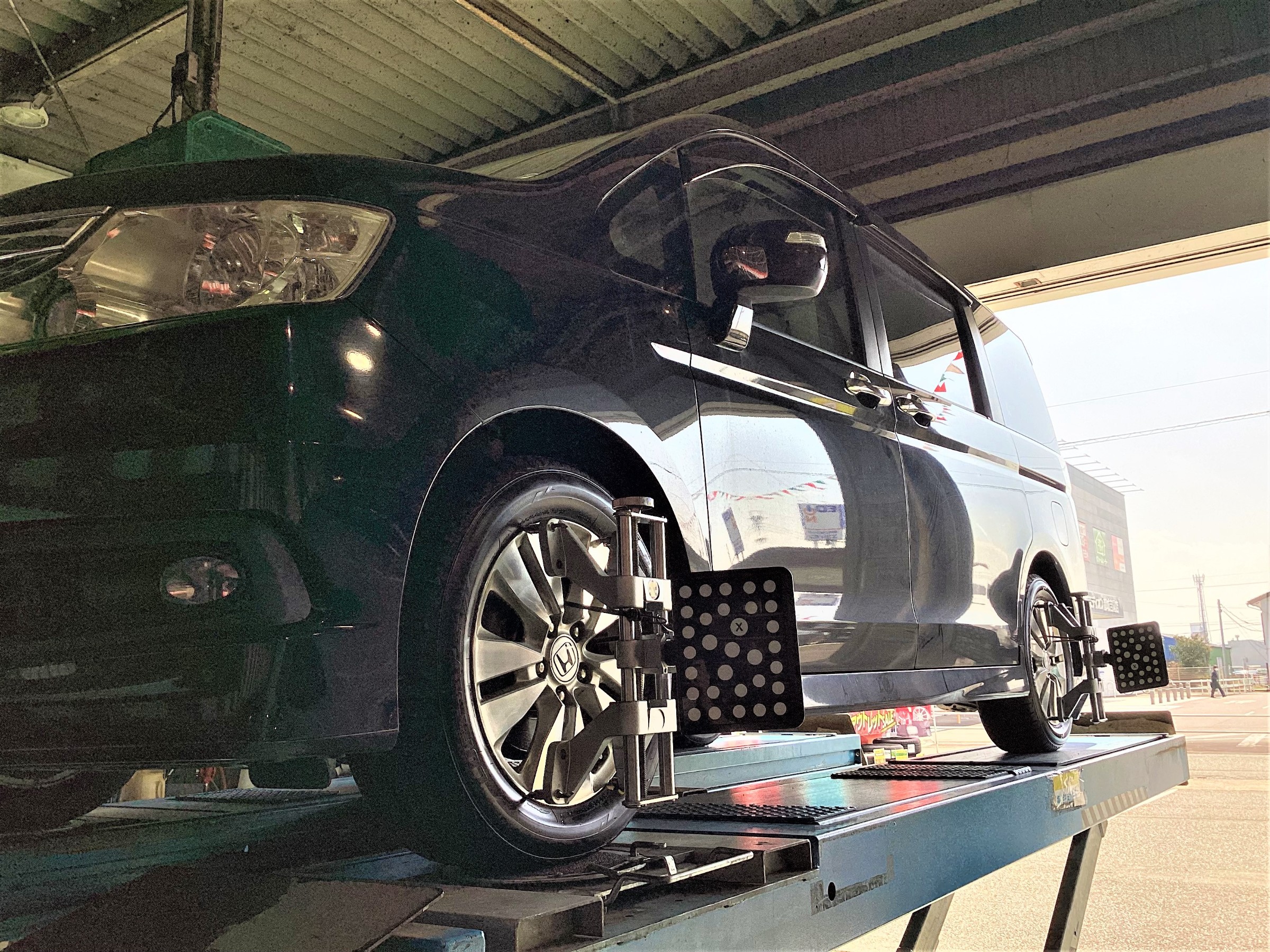 新規のお客様のステップワゴンへ、【タイヤ交換&アライメント調整】をおこないました!