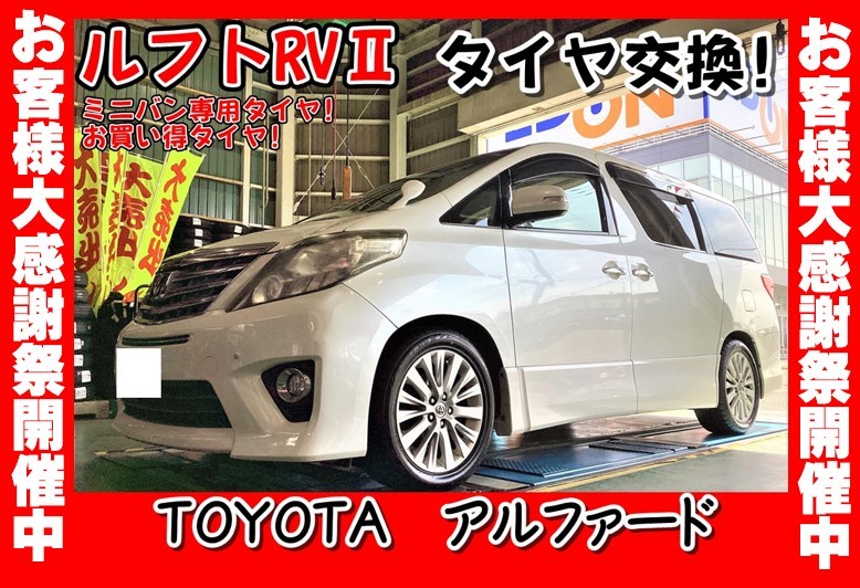 【タイヤ交換&アライメント調整】TOYOTA アルファード!ミニバン専用タイヤ、ルフトRVⅡ装着!