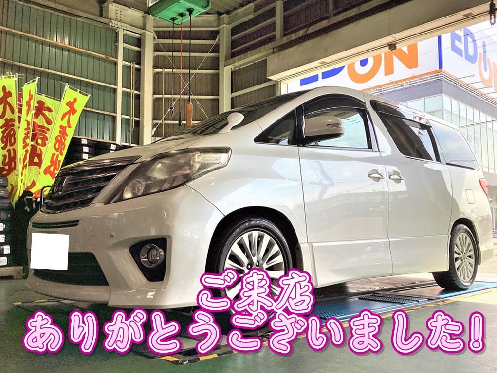 お客様のアルファードへ、【タイヤ交換&アライメント調整】をおこないました!