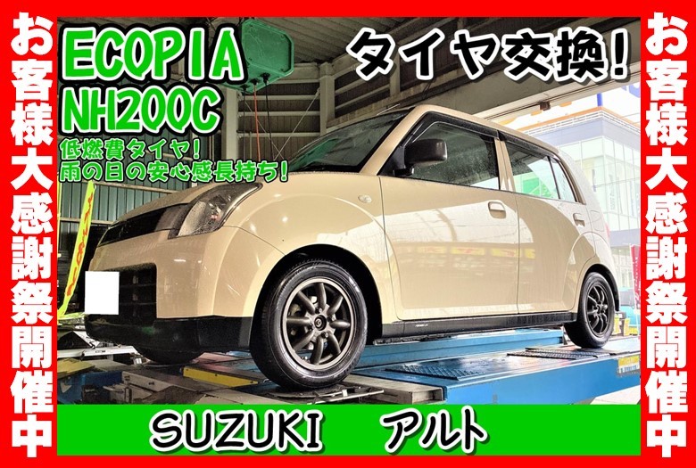 【タイヤ交換&アライメント調整】SUZUKI アルト!低燃費なECOPIAタイヤ装着!