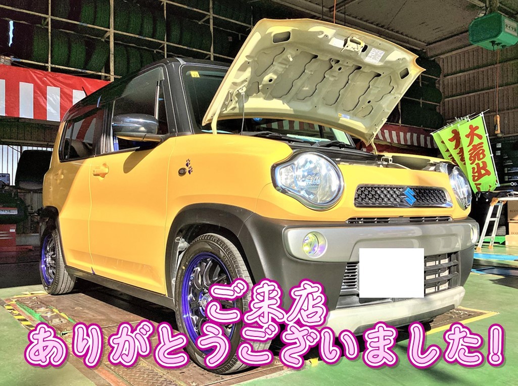 お客様のハスラーへ、【タイヤ交換&アライメント調整】をおこないました!
