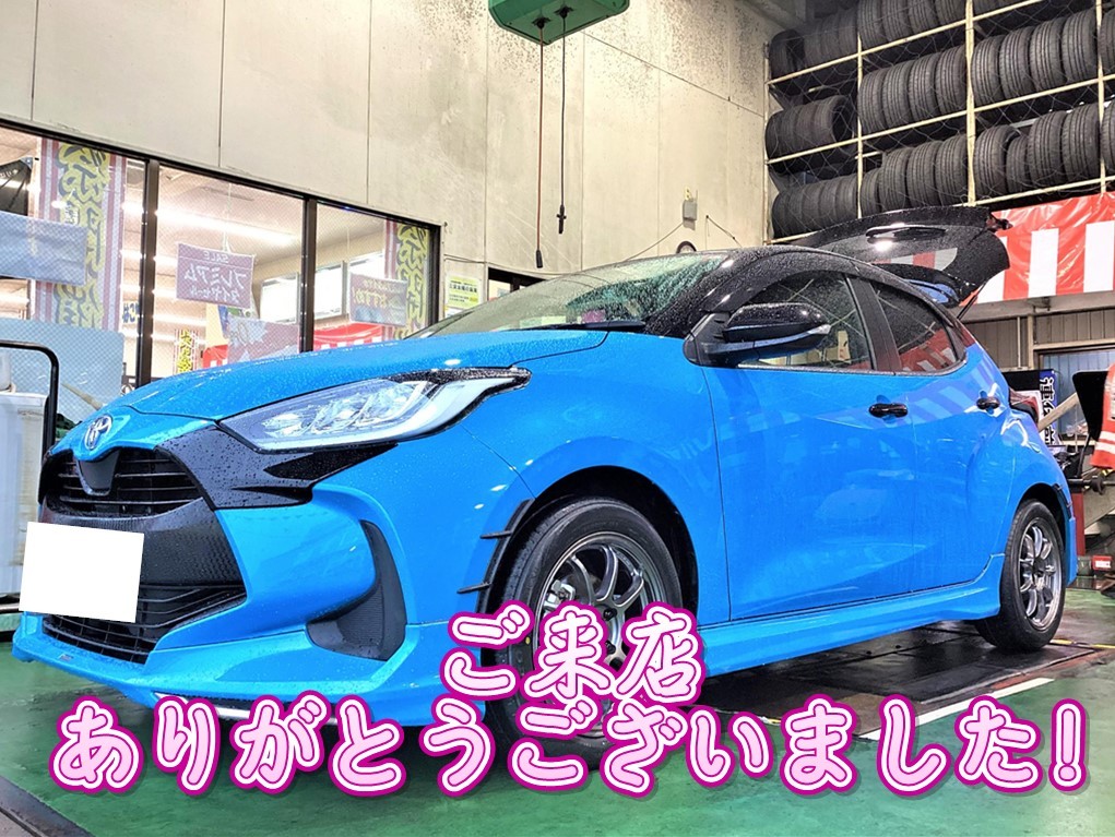 新規のお客様のヤリスへ、【タイヤホイール交換&アライメント調整】をおこないました!