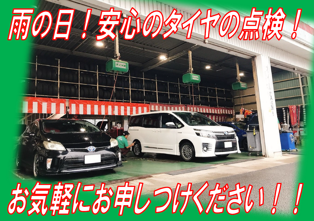 都城店!今日も雨ですがタイヤ点検入庫中!!