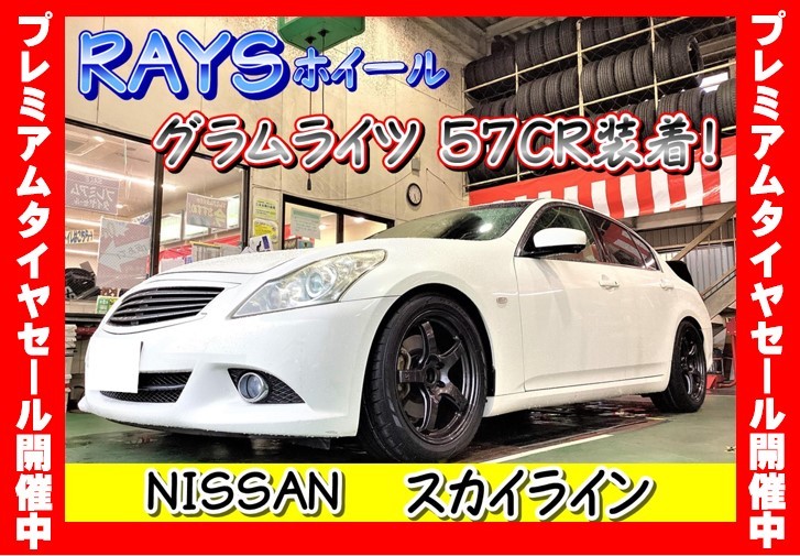 【ホイール交換&アライメント調整】NISSAN スカイライン!RAYS グラムライツ57CR装着!