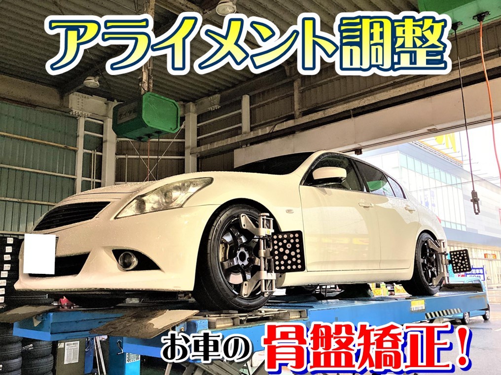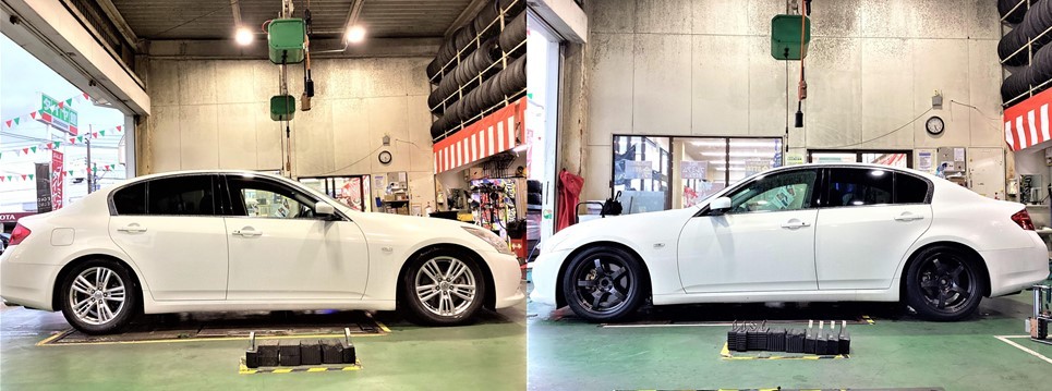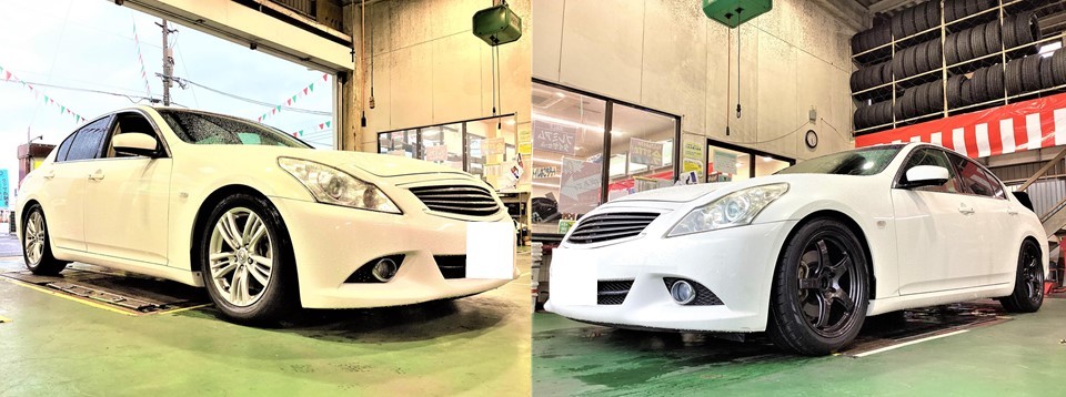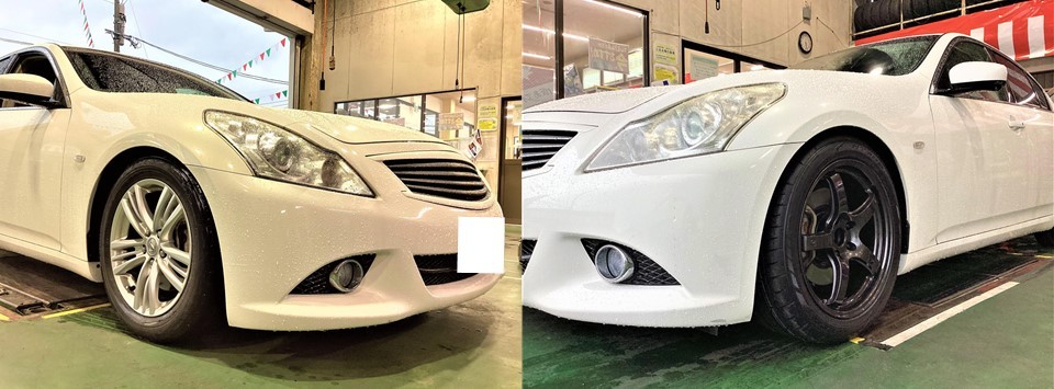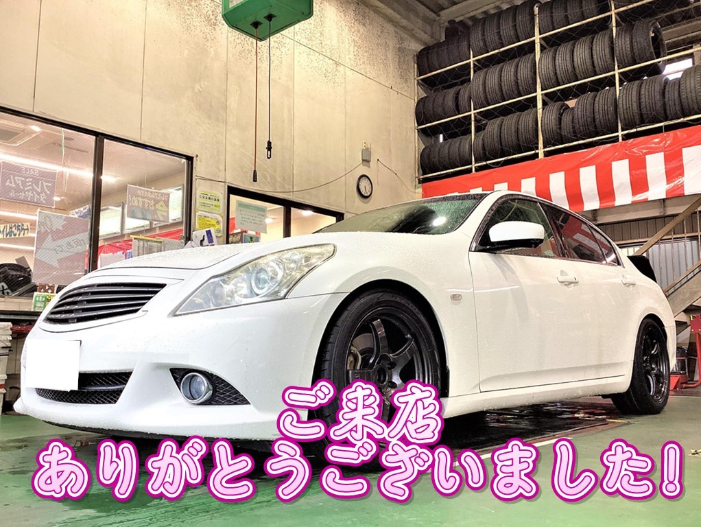 新規のお客様のスカイラインへ、【ホイール交換&アライメント調整】をおこないました!