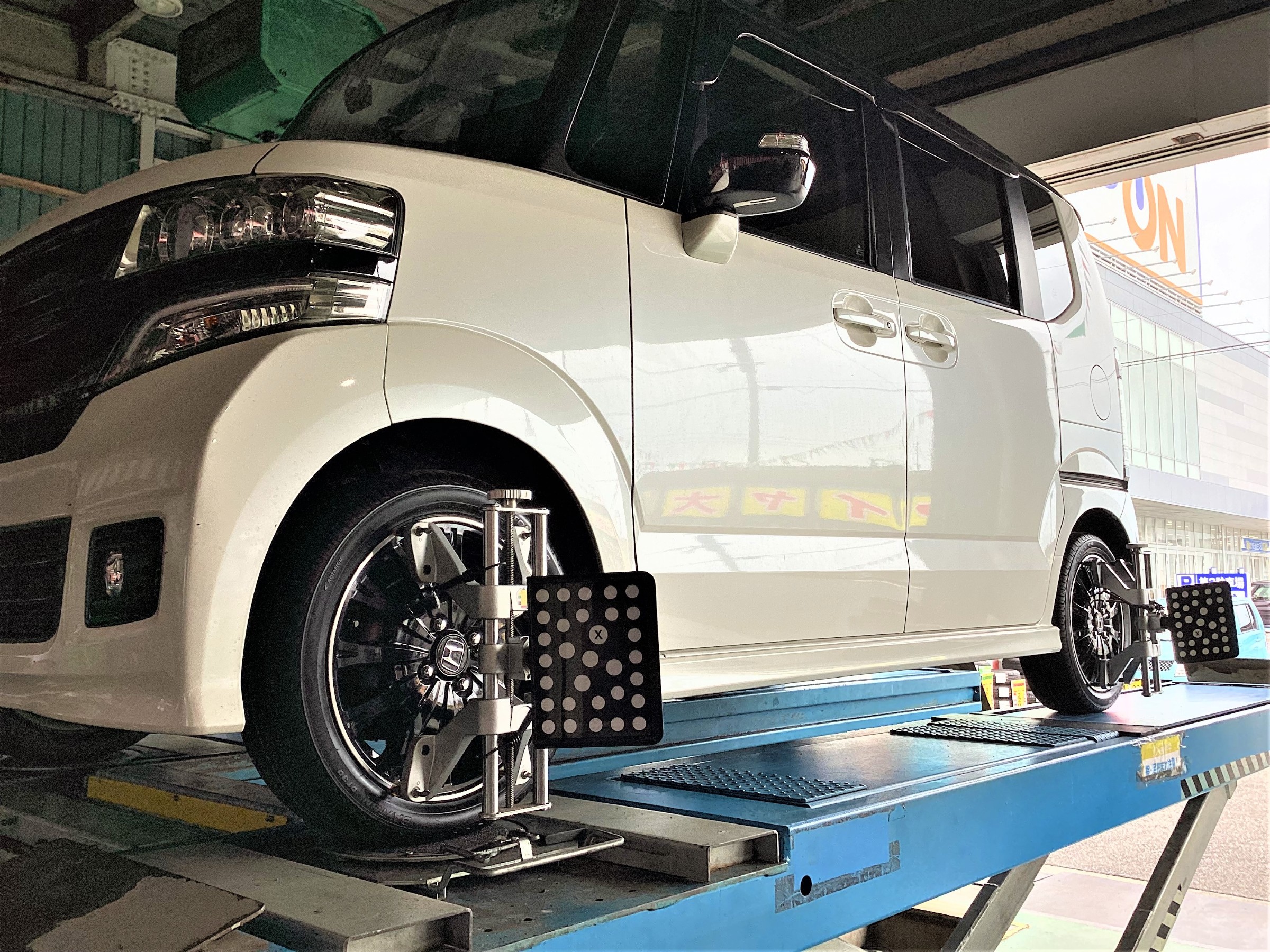 新規のお客様のN-BOXへ、【タイヤ交換&アライメント調整】をおこないました!