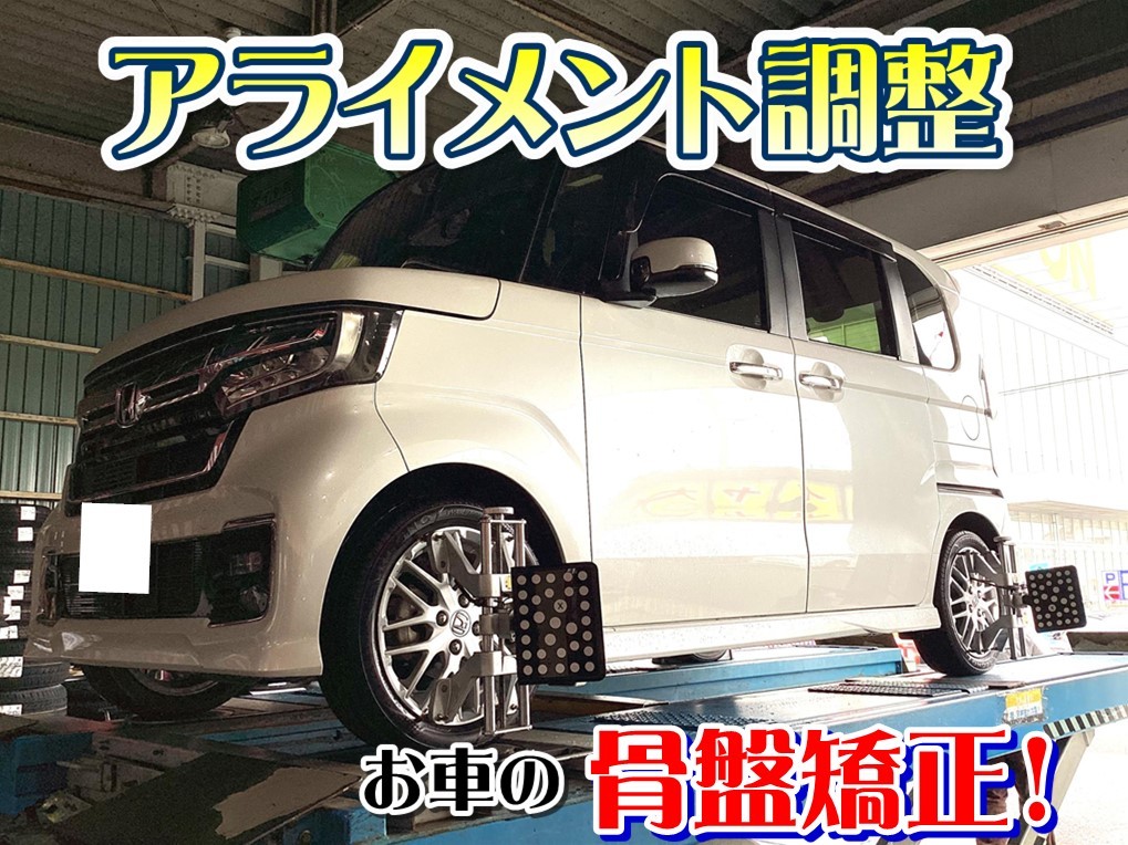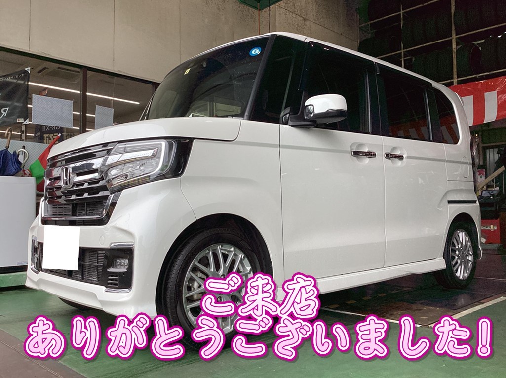 お客様のN-BOXへ、【タイヤ交換&アライメント調整】をおこないました!