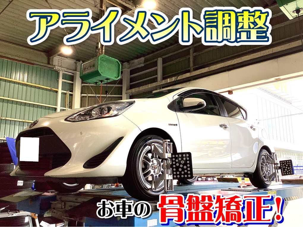 お客様のアクアへ、【タイヤホイール交換&アライメント調整】をおこないました!