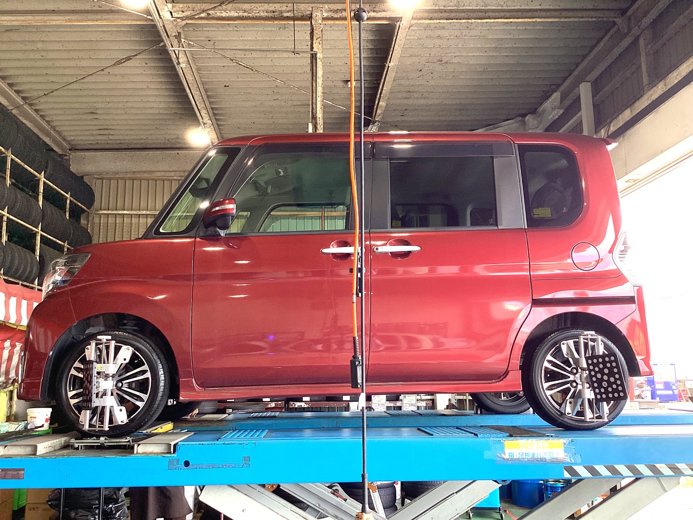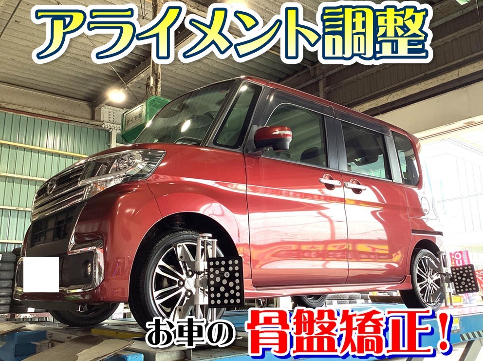 新規のお客様のタントへ、【タイヤ交換&アライメント調整】をおこないました!