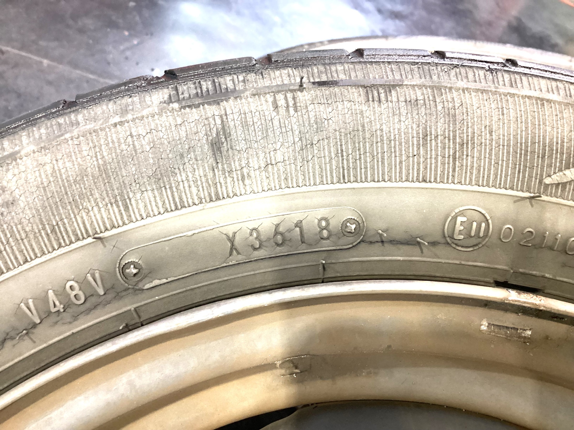 タイヤの製造年月が『2018年』のタイヤで、ひび割れが出てきて危ない状態でした⊙.☉