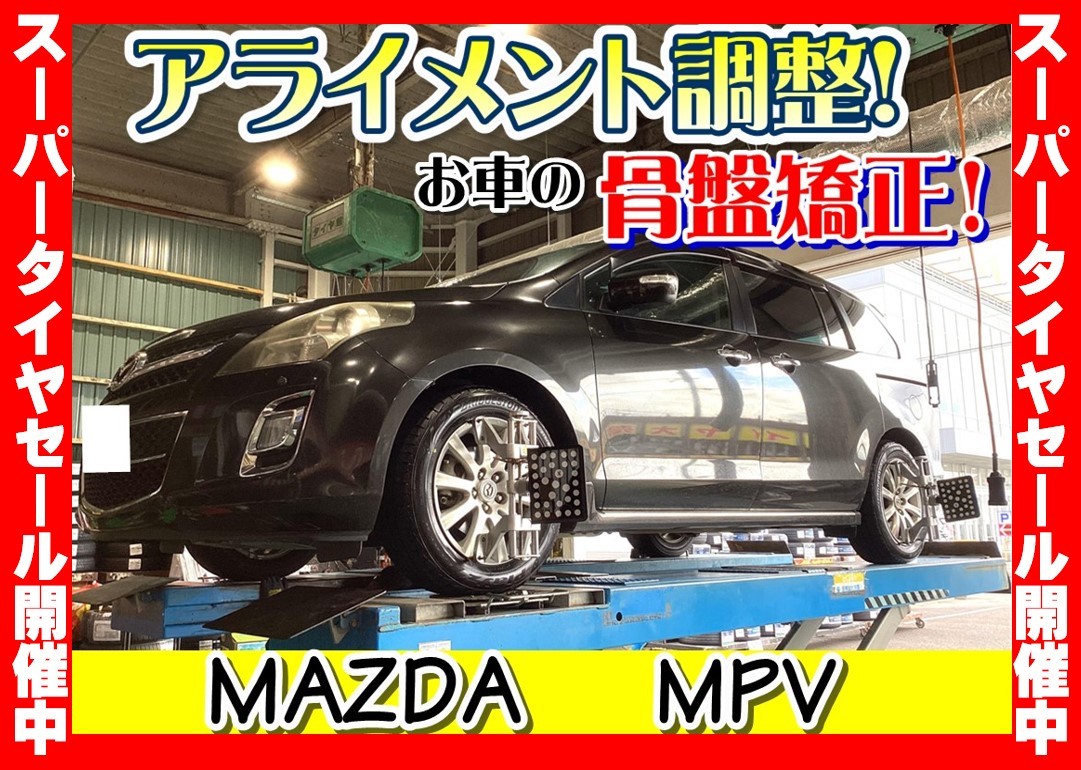 【アライメント調整】MAZDA MPVのアライメント調整をしました!