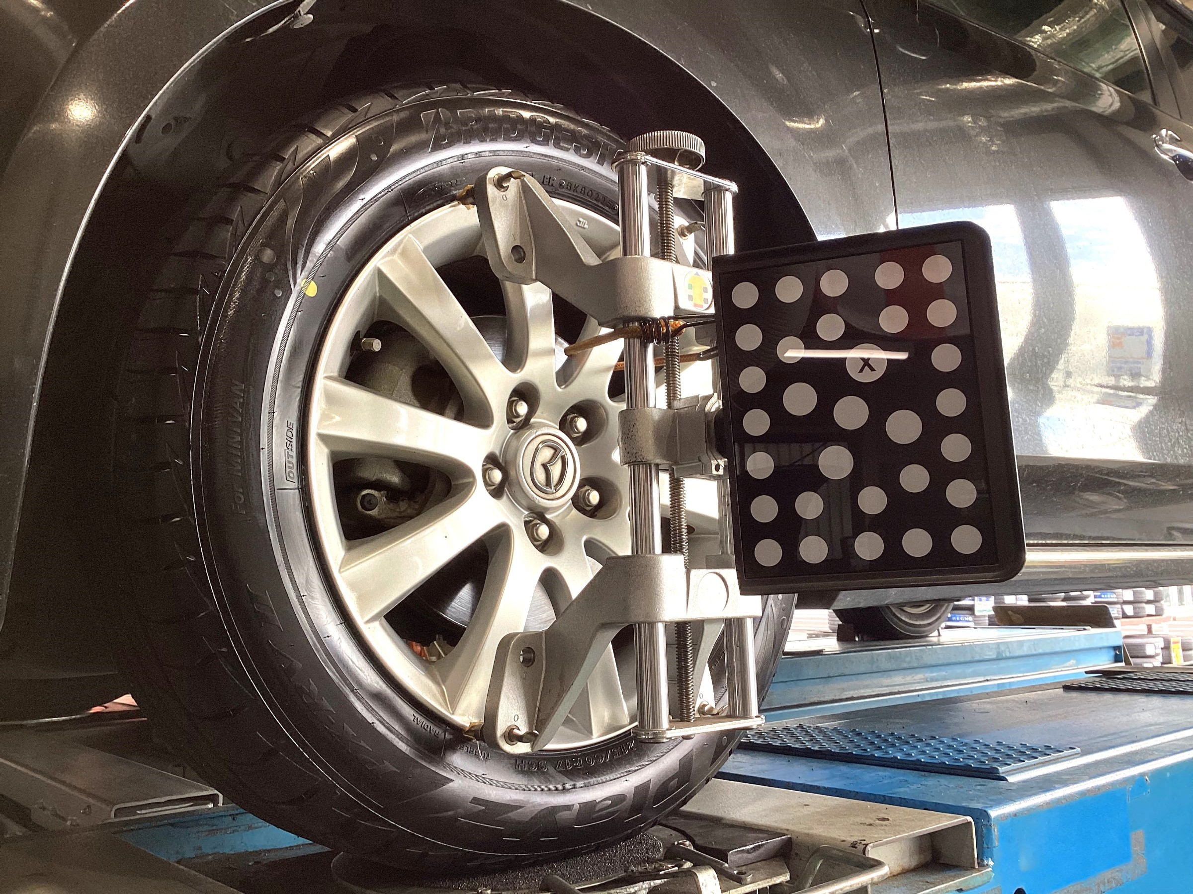 さて本日は『MAZDA MPV』のアライメント調整をご紹介します。
