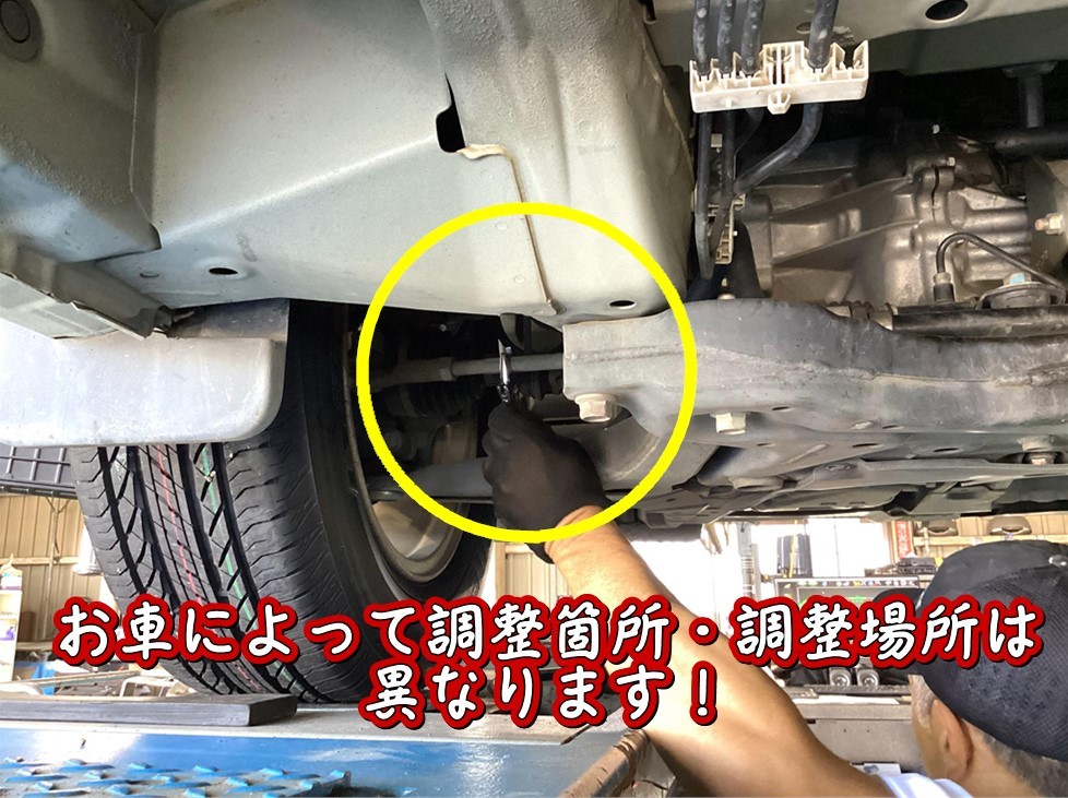 お車に合わせて足まわりの微妙な角度の歪みを調整するのが【アライメント調整】です!
