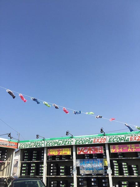 天気も良いので、少し早いですが、店頭に鯉のぼり出してみました。