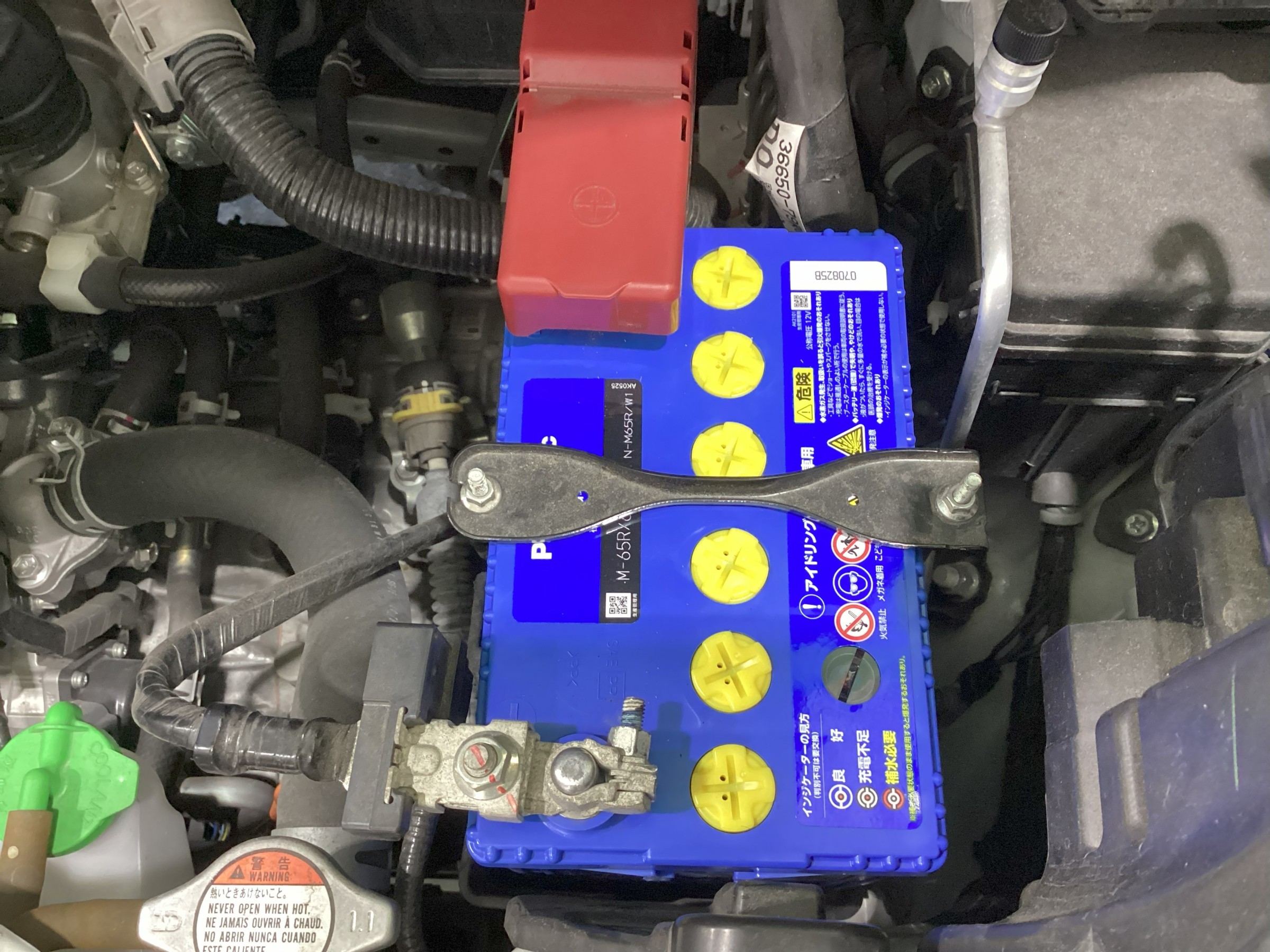今回取付させていただいたお車はアイドリングストップ車用のバッテリーです。