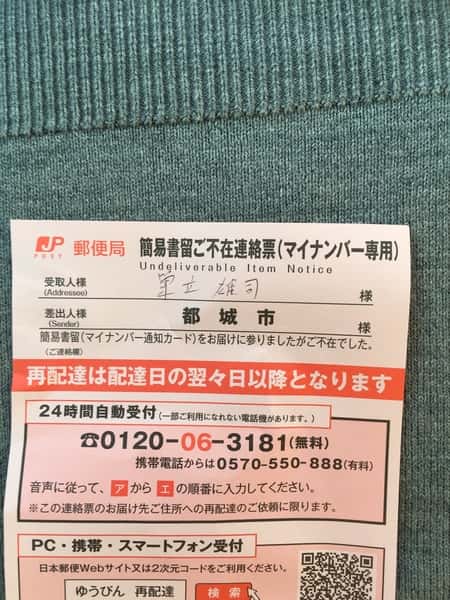 マイナンバー不在通知!!