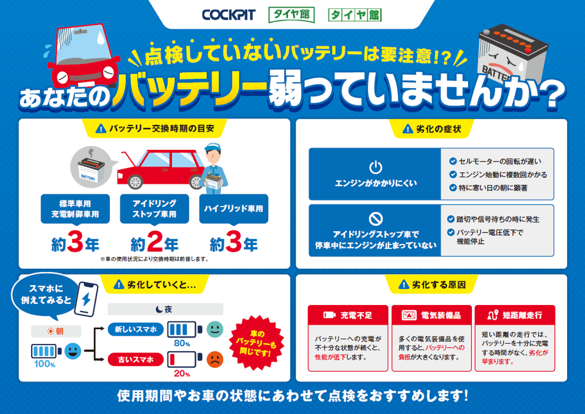 そのため3~4年交換してないバッテリーは特に要注意です!
