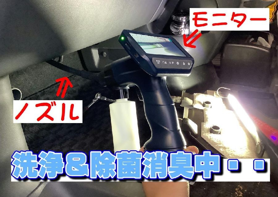 ノズルから洗浄液を注入し除菌洗浄します!!