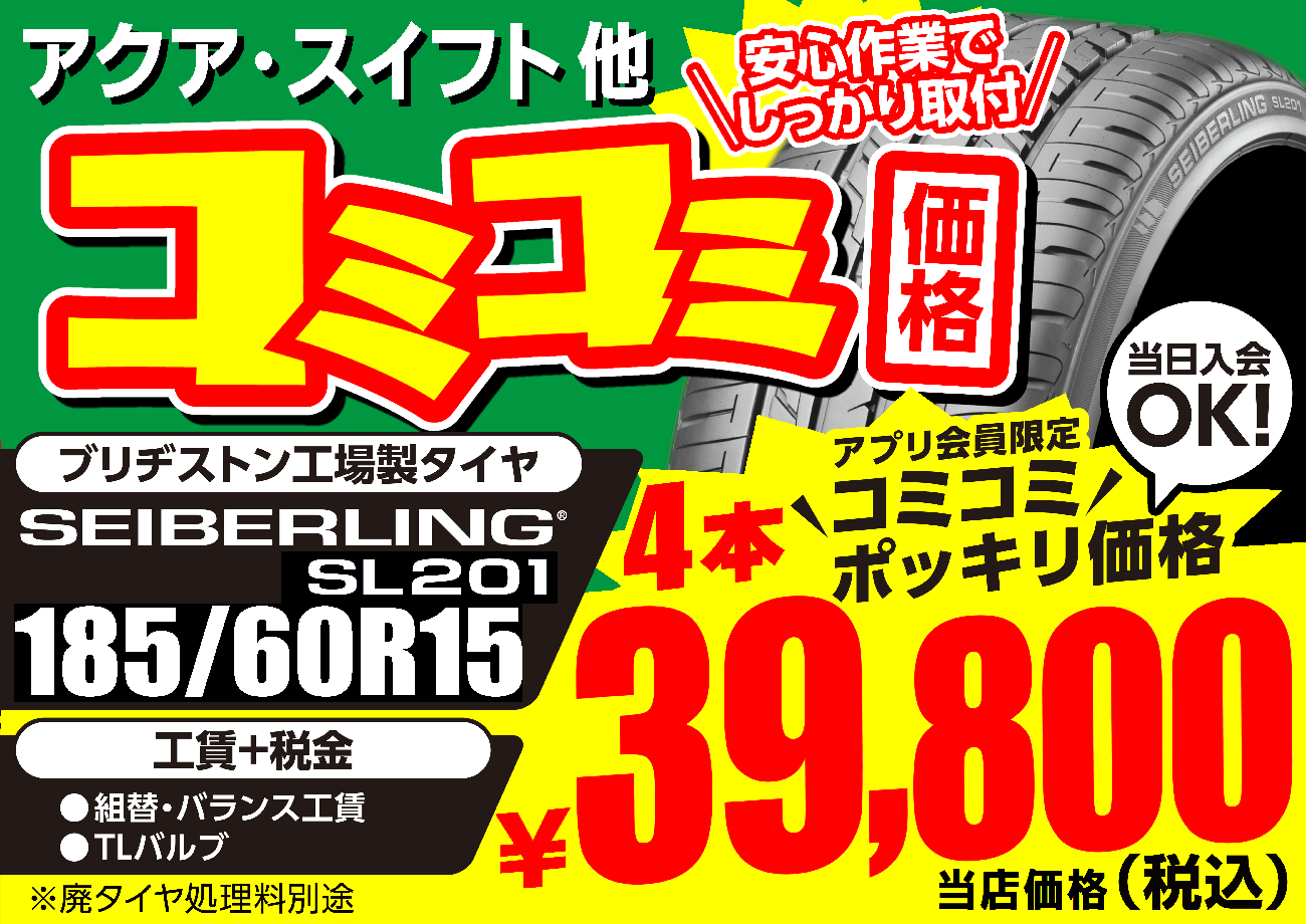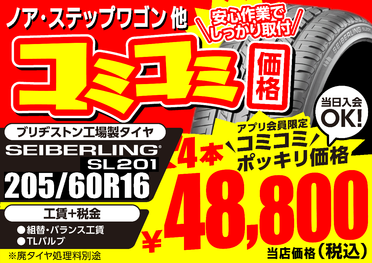 【アプリ会員限定品】タイヤ4本交換コミコミ価格!(※廃タイヤ処理料のみ別途)