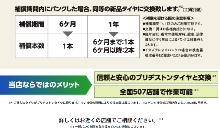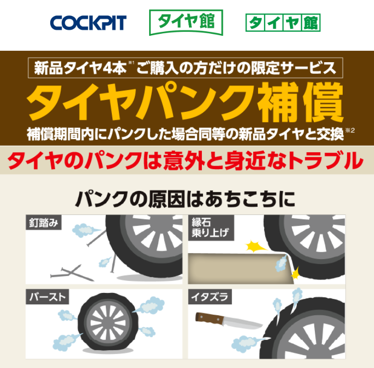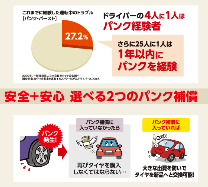 パンク補償について(※タイヤ4本ご購入の方のみご加入可能)