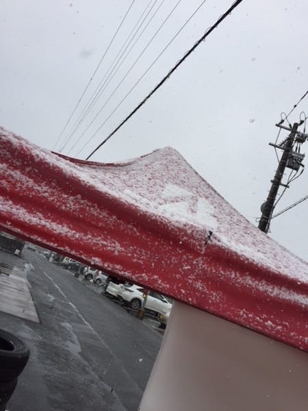 お店もテントの上とかが少し積もっていますよ(^O^)