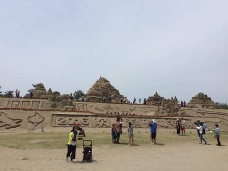 子供たちも飽きてしまい、急きょ、砂の祭典行ってきました。
