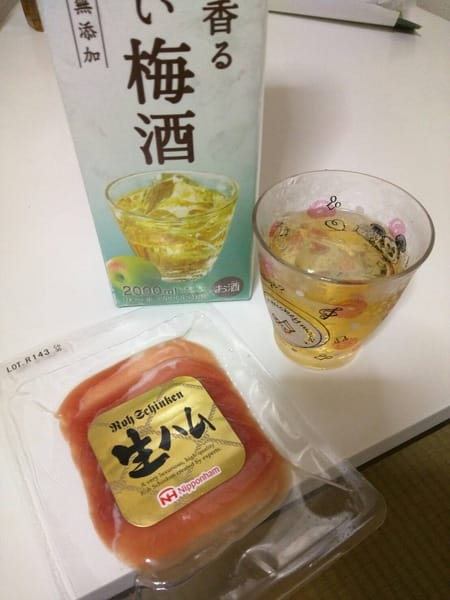 梅酒ロックと生ハムで晩酌!!