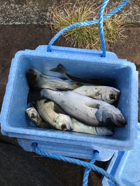 シーバスの子供セイゴが3匹と他小魚が数匹でした。。