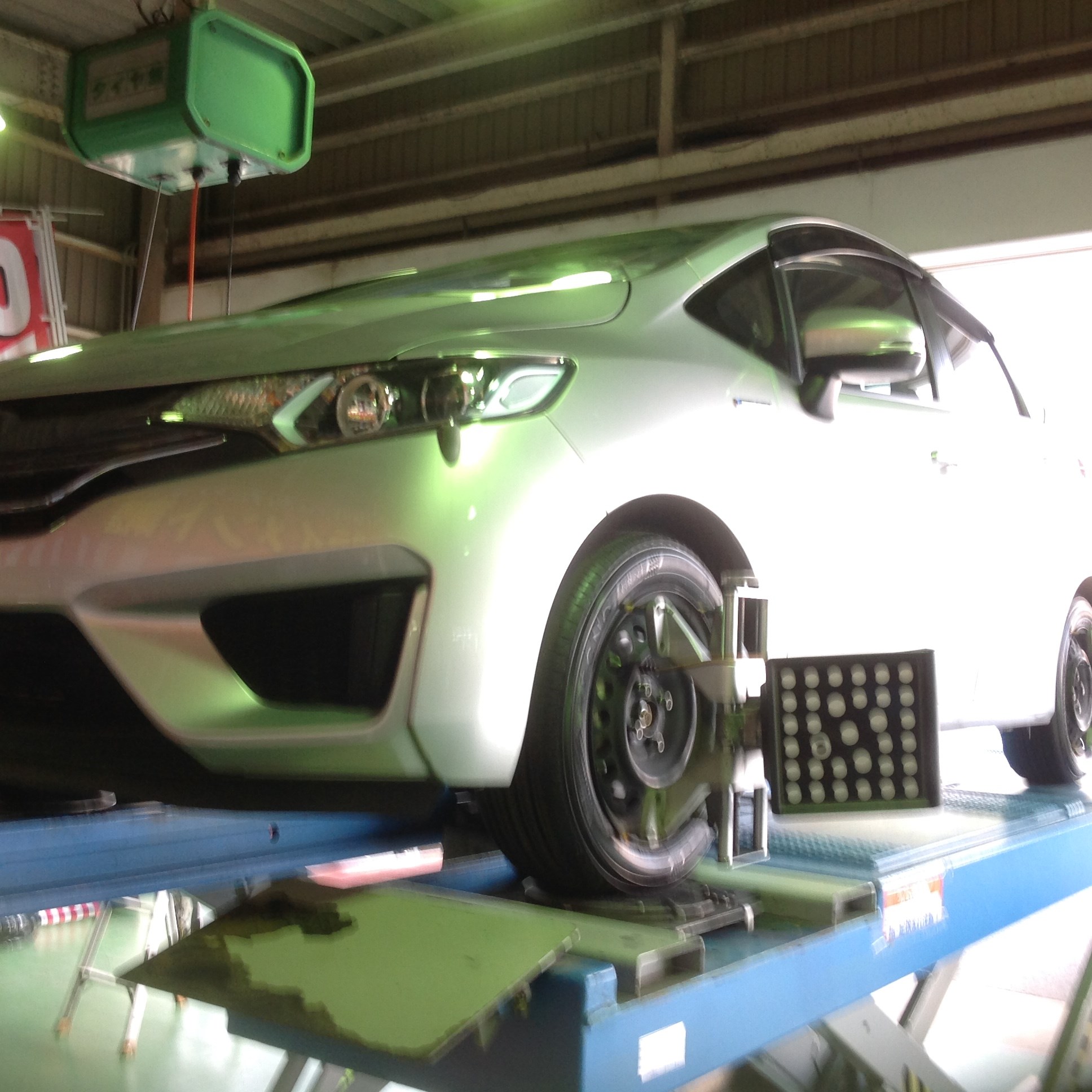 タイヤ交換、アライメント調整、マフラー坊錆剤作業しました。作業時間60分で完了しました。