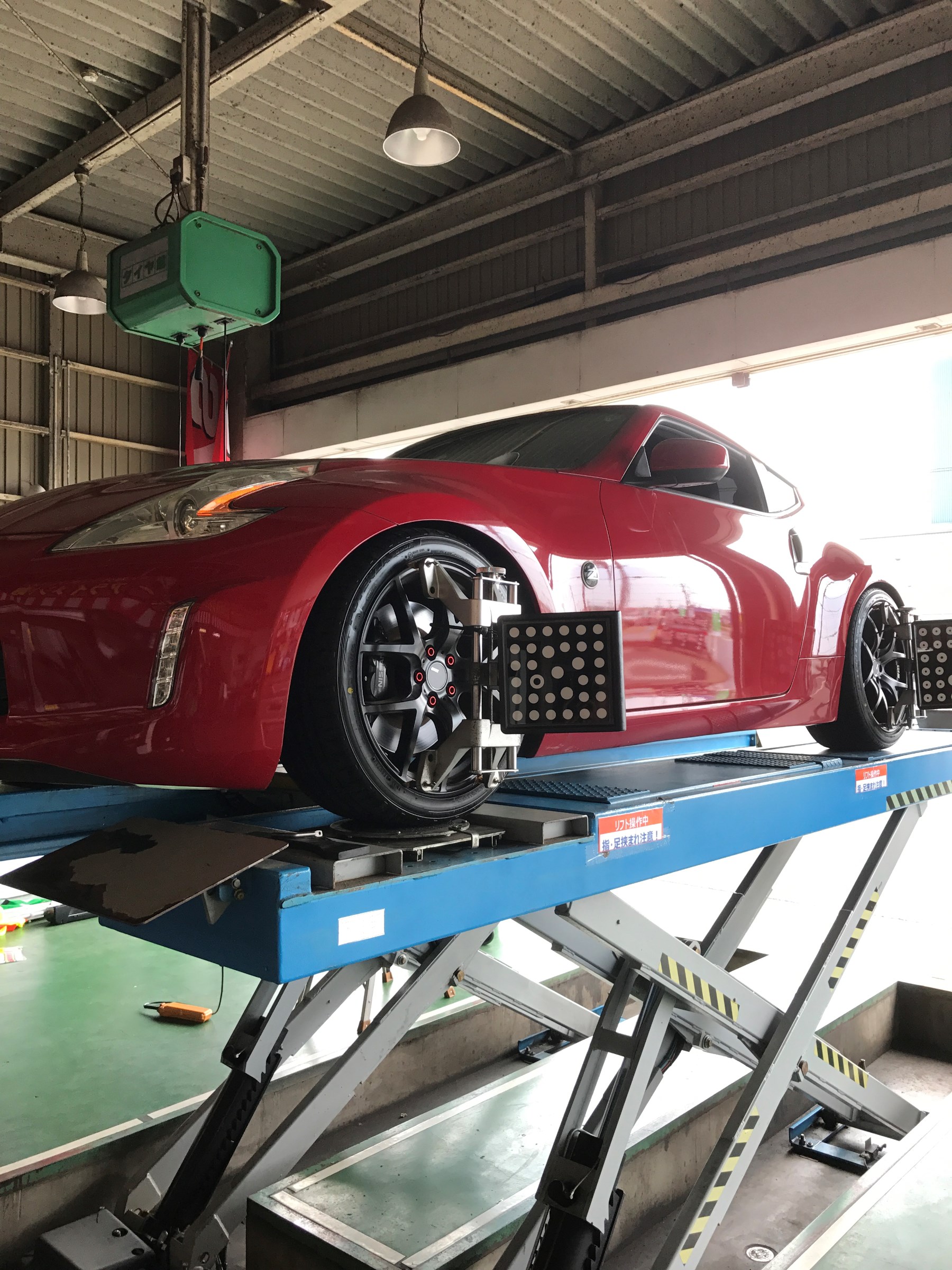 本日、タイヤ館都城で、日産Z34アライメント調整いたしました。一時間位で、作業終わりました。