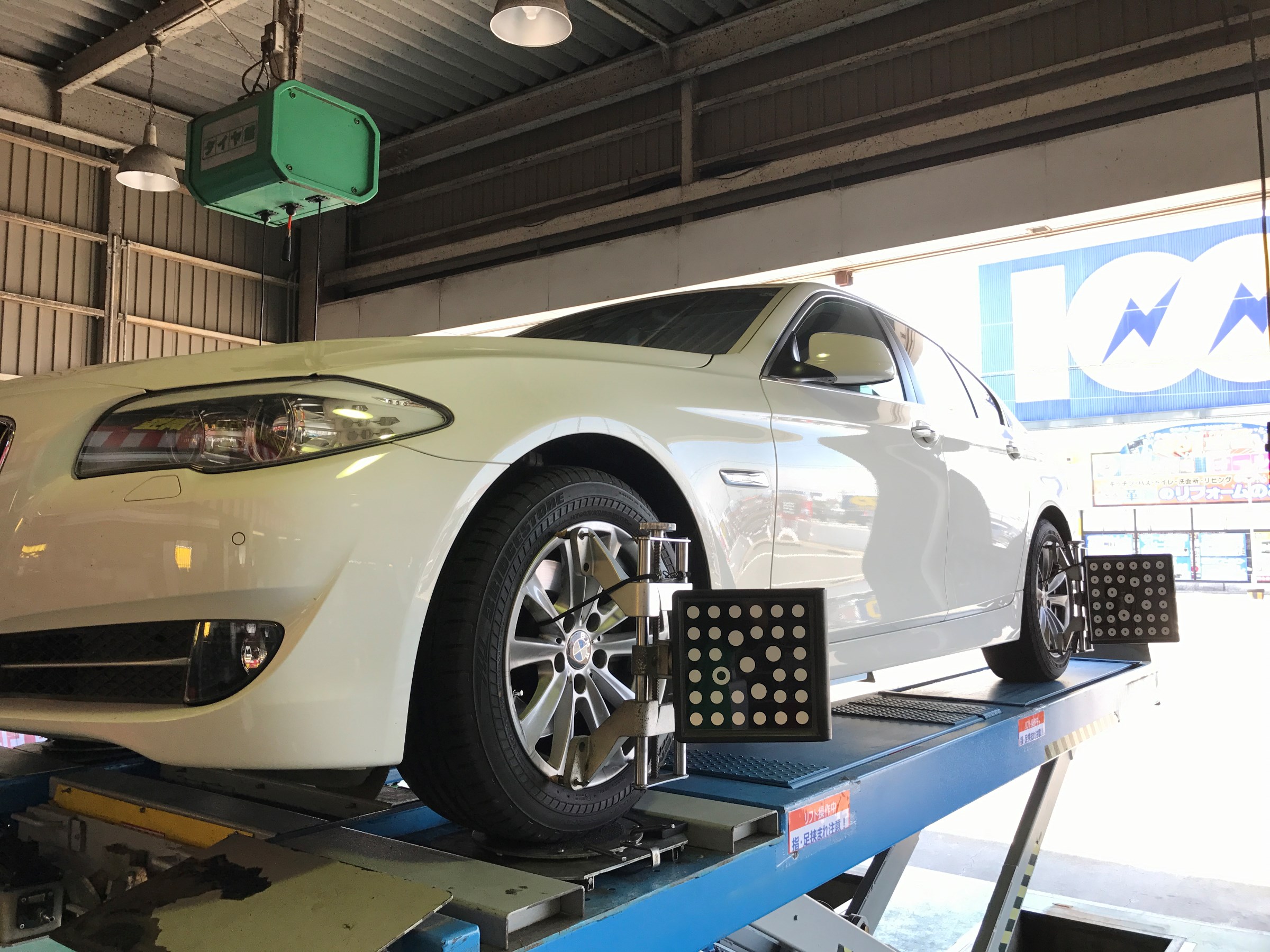 本日、タイヤ館都城で、BMWのアライメント調整致しました。