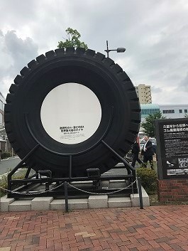 久留米駅にはとても大きいタイヤが飾られているんです!
