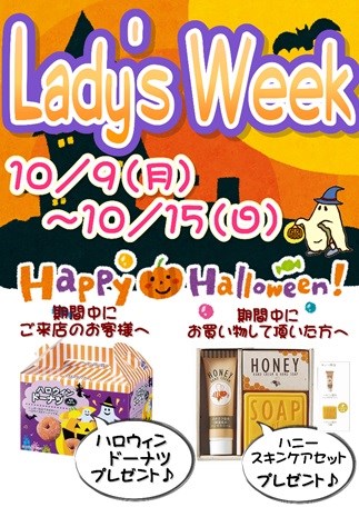 10/9(月)~10/15(日)の期間は「ハローウィン!レディースウィーク」を開催します!!!